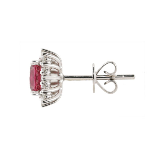 14Kt White Gold 1.3 Ctw Pink Tourmaline And White Zircon Stud Earrings