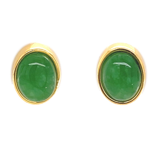 Yellow Gold Plated Over Sterling Silver Dyed Green Jade Gemstone Stud Earrings