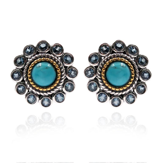 Sterling SIlver 925 Sonora Beauty Turquoise, White Natural Zircon Studs Earrings