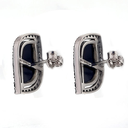 925 Sterling Silver London Blue Topaz, White Natural Zircon Stud Earrings