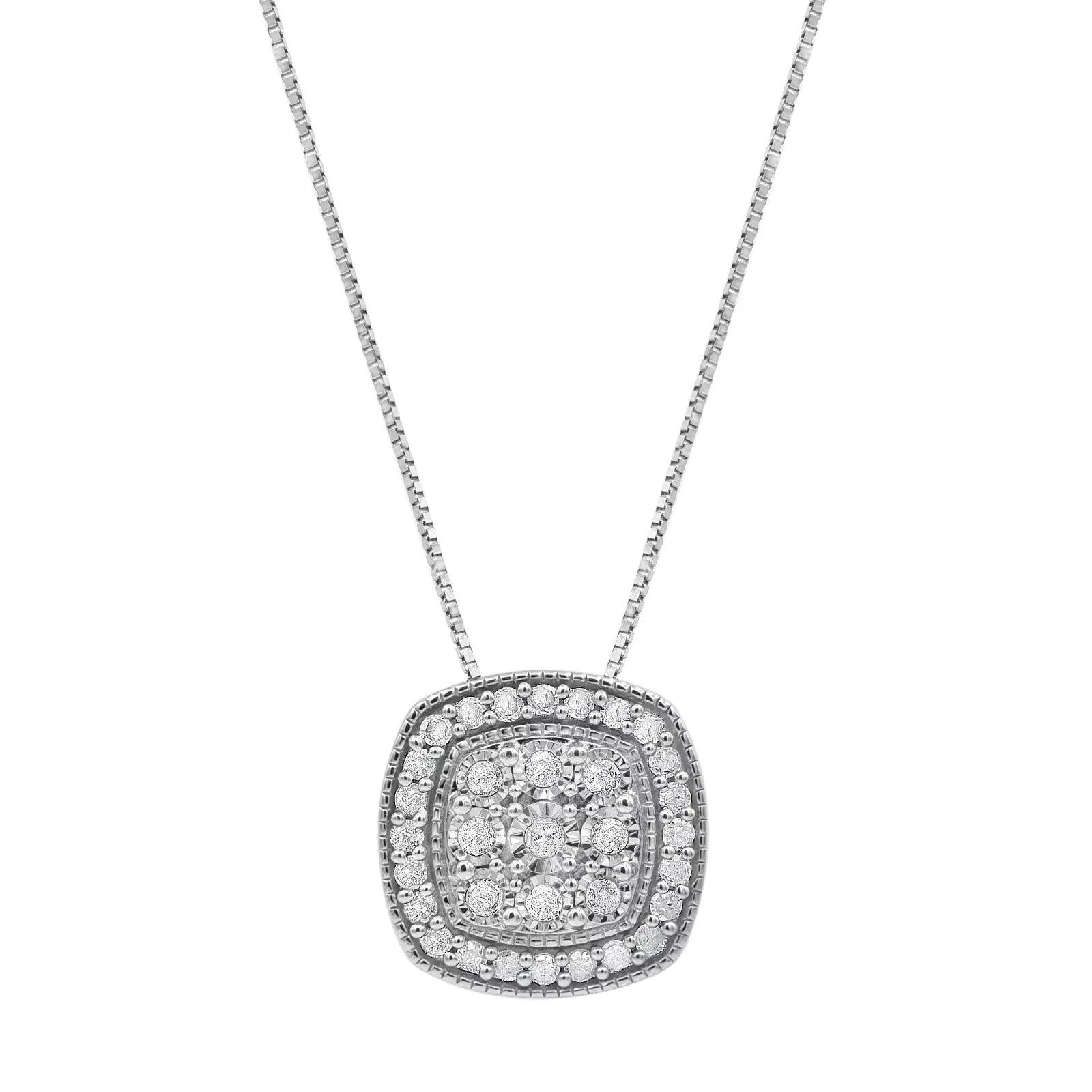Add a touch of timeless elegance to your jewelry collection with this stunning 1/2 Carat Total Weight Round Diamond Cushion Halo Pendant. Crafted with precision and care, this pendant features a beautiful cushion-shaped halo design, adorned with 33 round, natural diamonds that sparkle brilliantly. Suspended from an 18-inch sterling silver chain, this pendant is the perfect accessory for any occasion, making it an exquisite gift for yourself or a loved one.