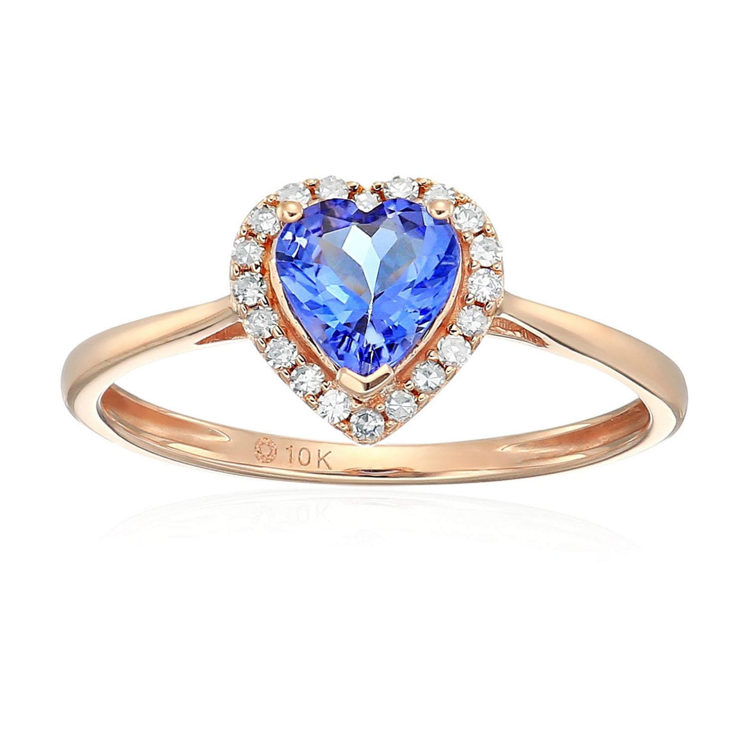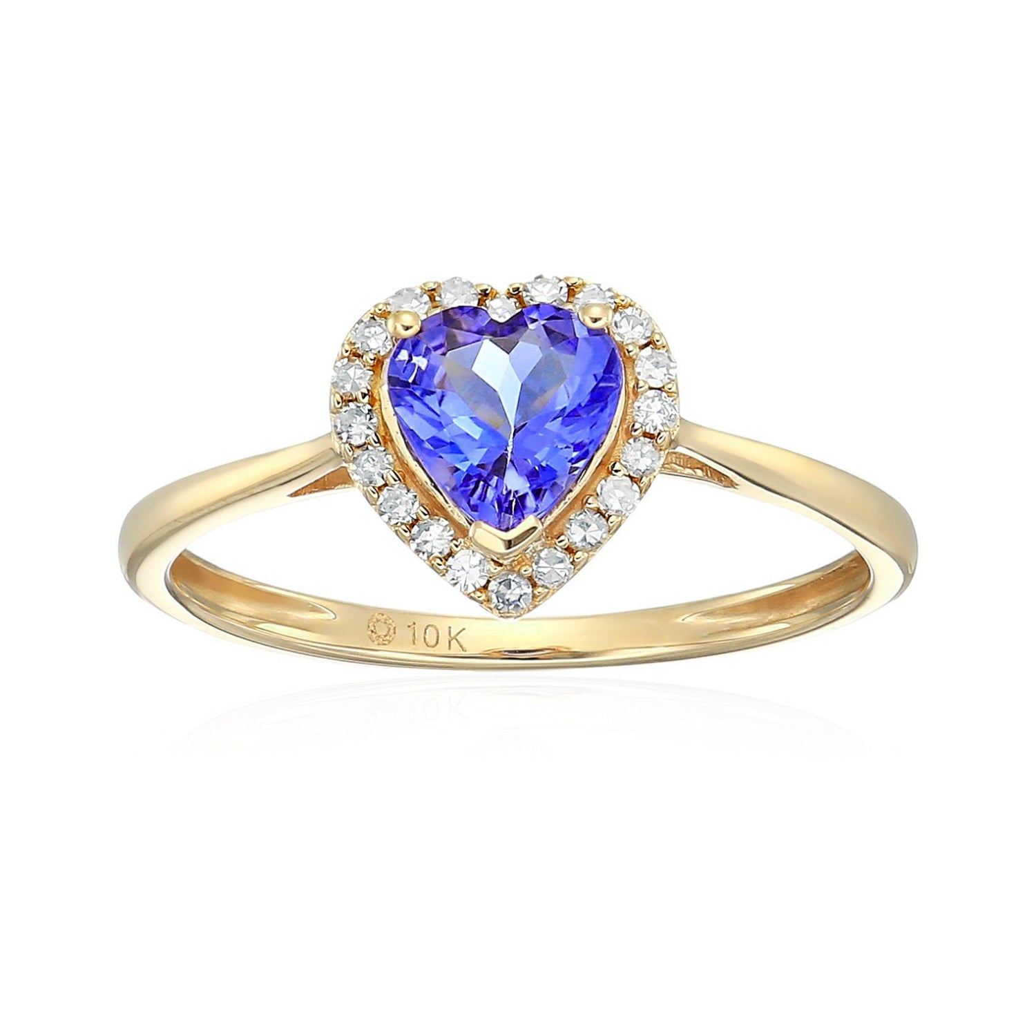 10k Gold Multi Gemstone Option Diamond Solitaire Heart Halo Engagement Ring (1/10cttw, H-I Color, I1-I2 Clarity),