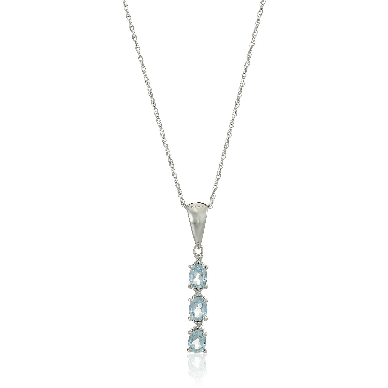 10k Gold Multi Gemstone Option and Diamond Accented 3-Stone Pendant Necklace, 18"