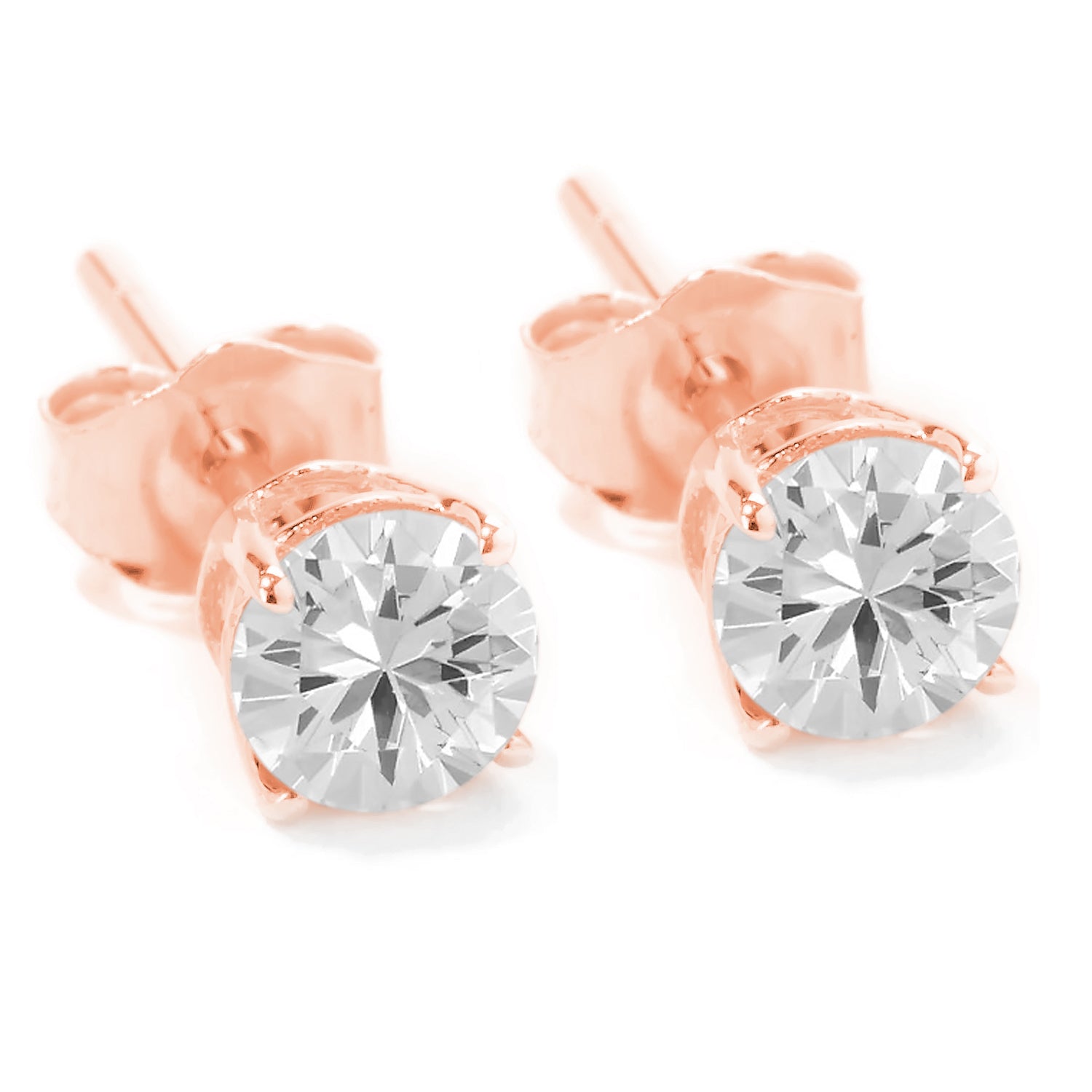 - These stud earrings feature a stunning array of round-cut gemstones, each set in a classic prong setting.