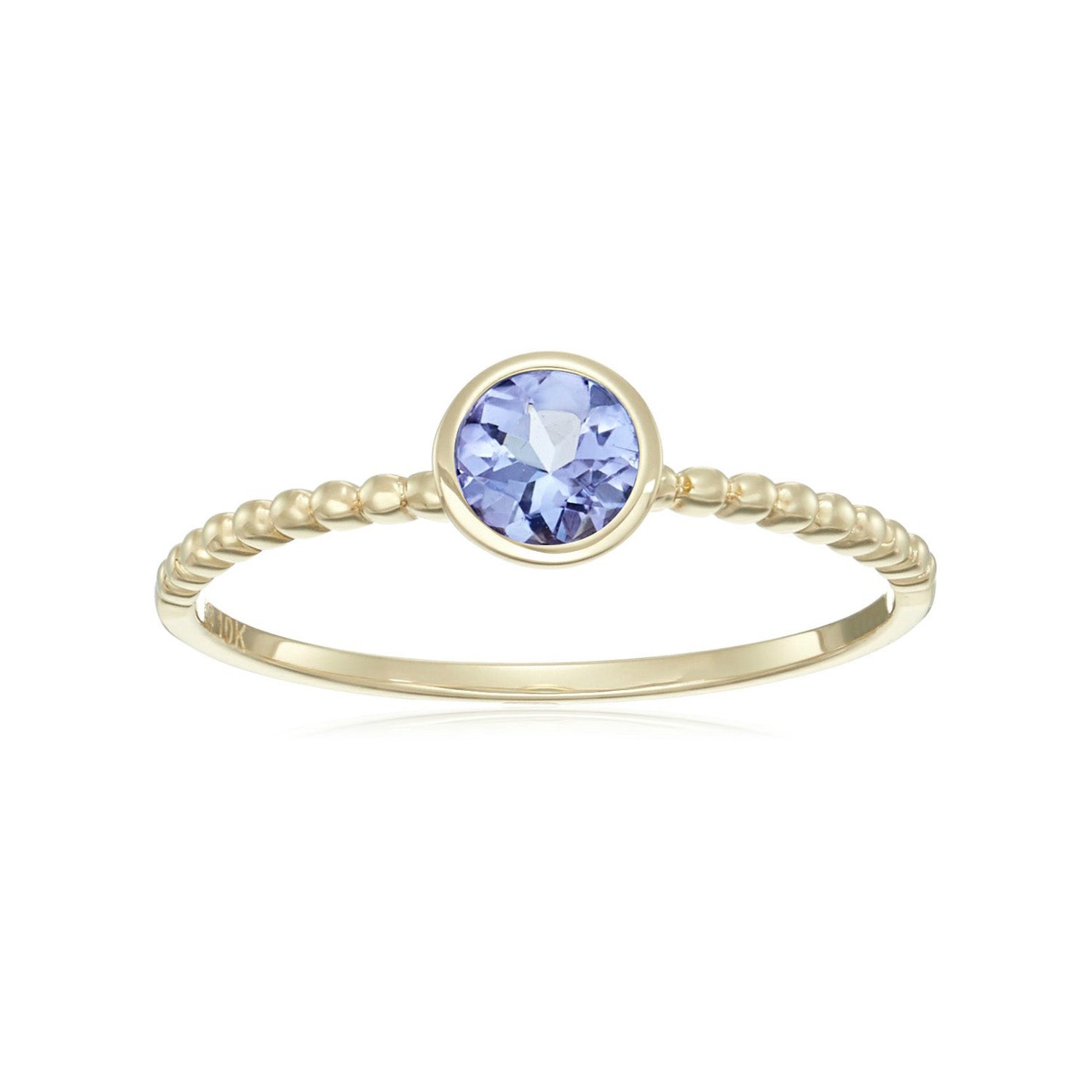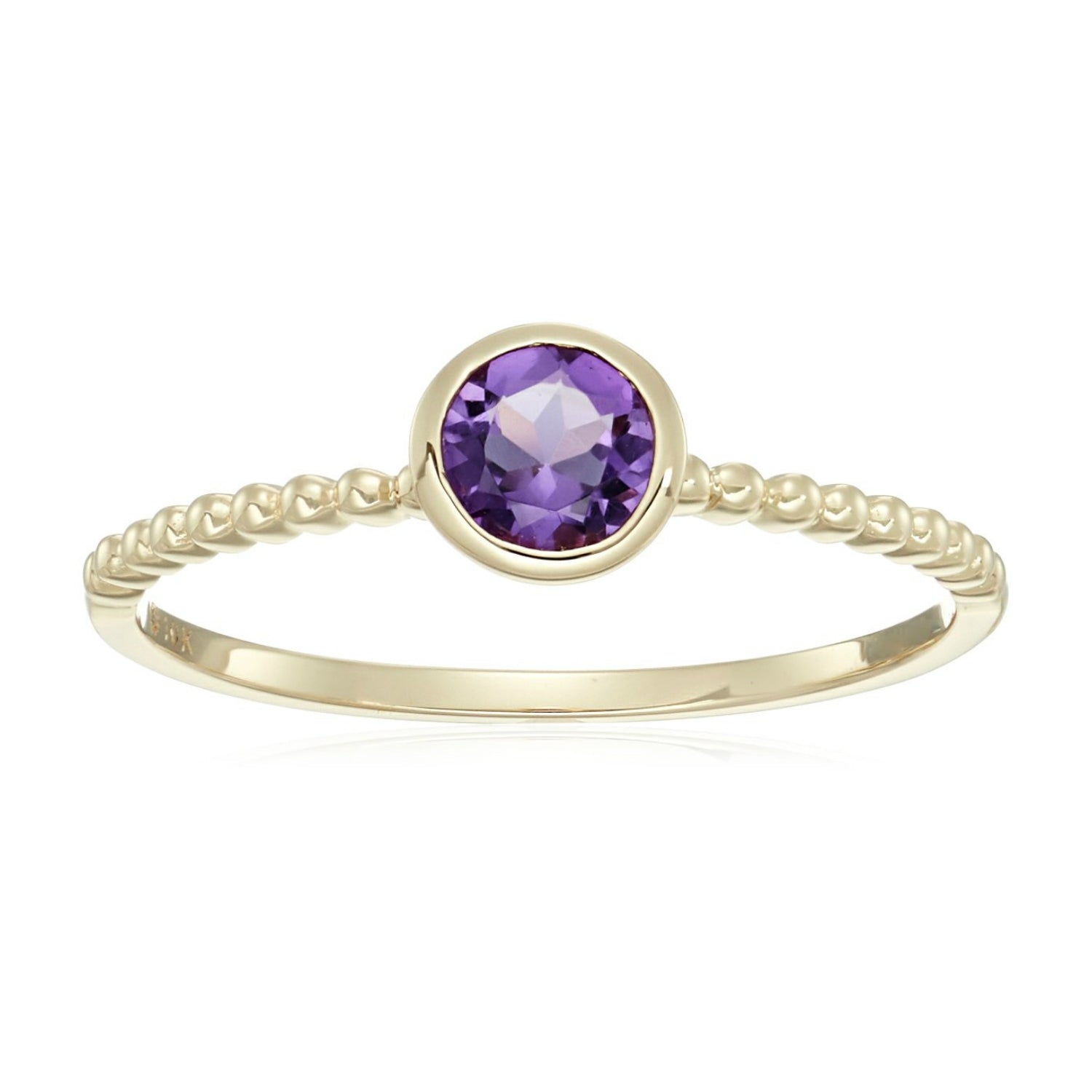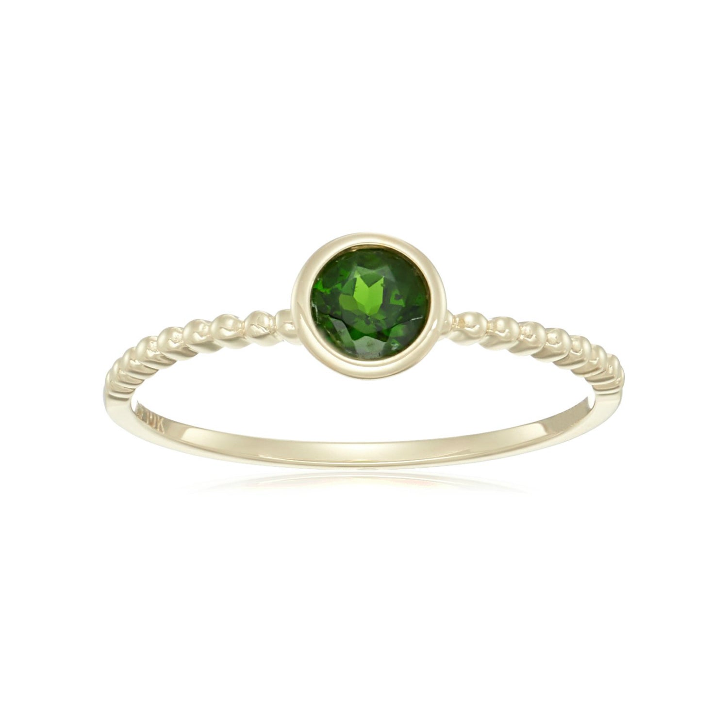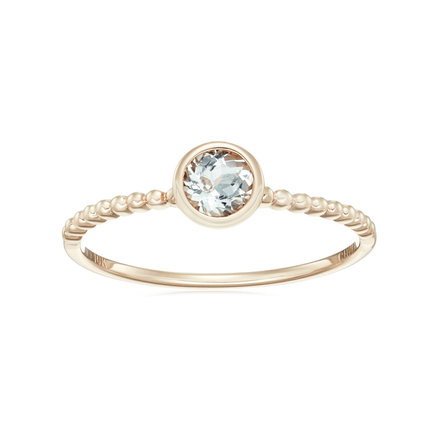 10k Multi Gemstone Option Solitaire Beaded Shank Stackable Ring