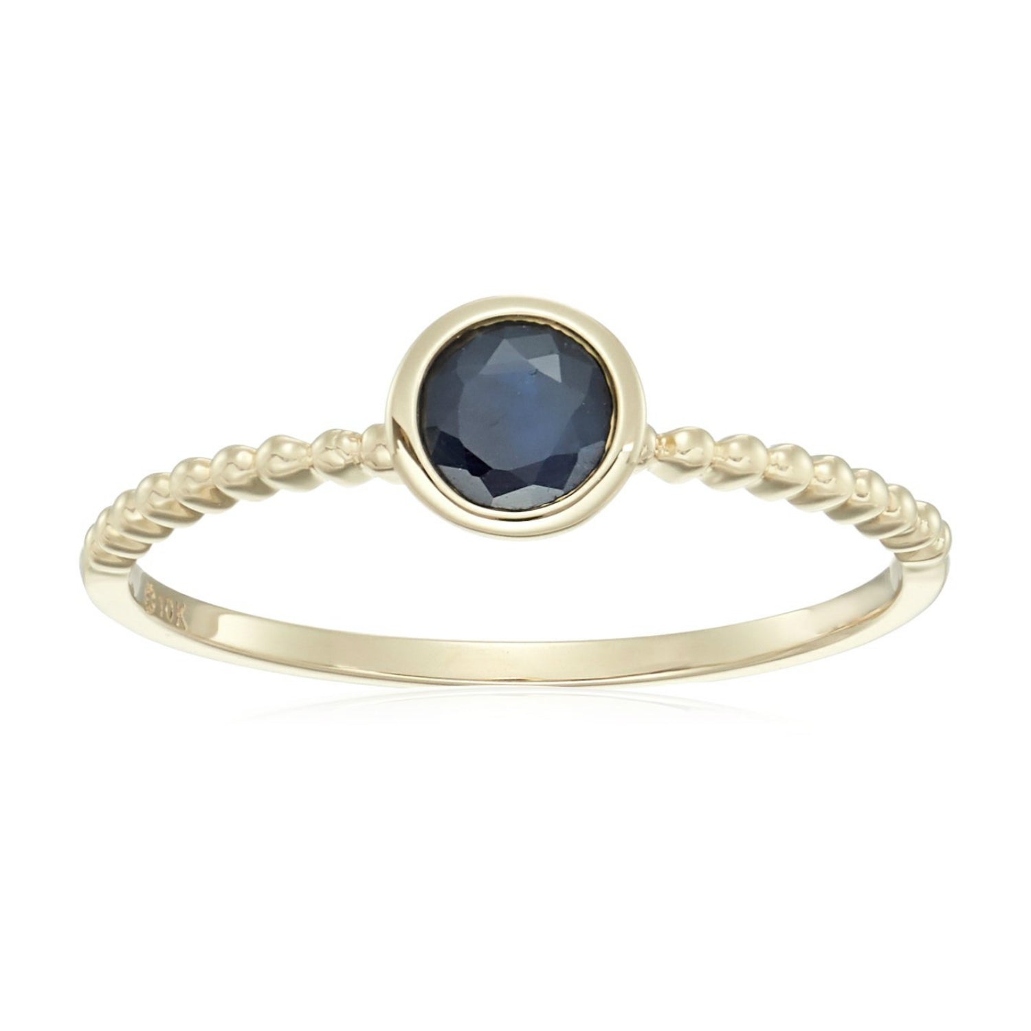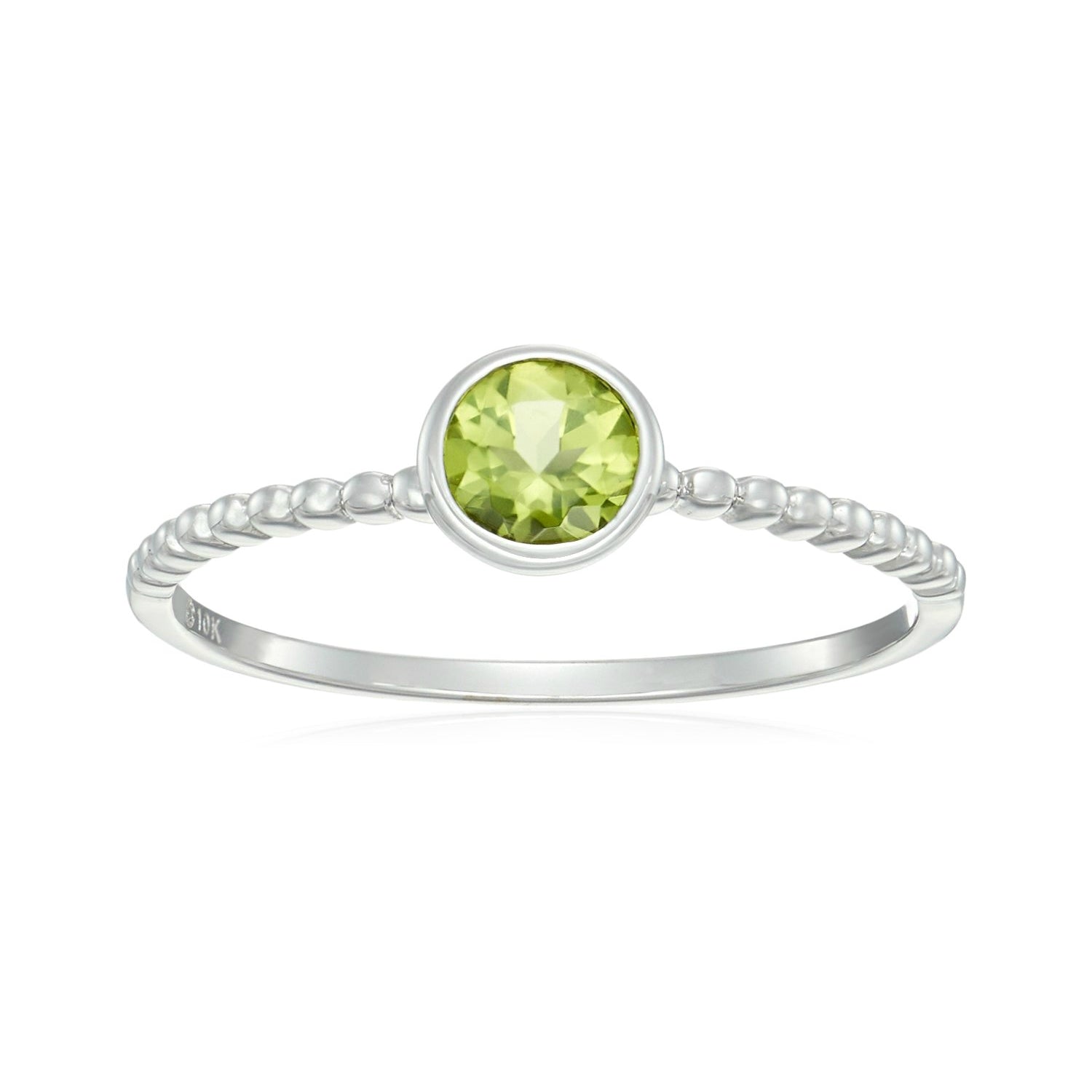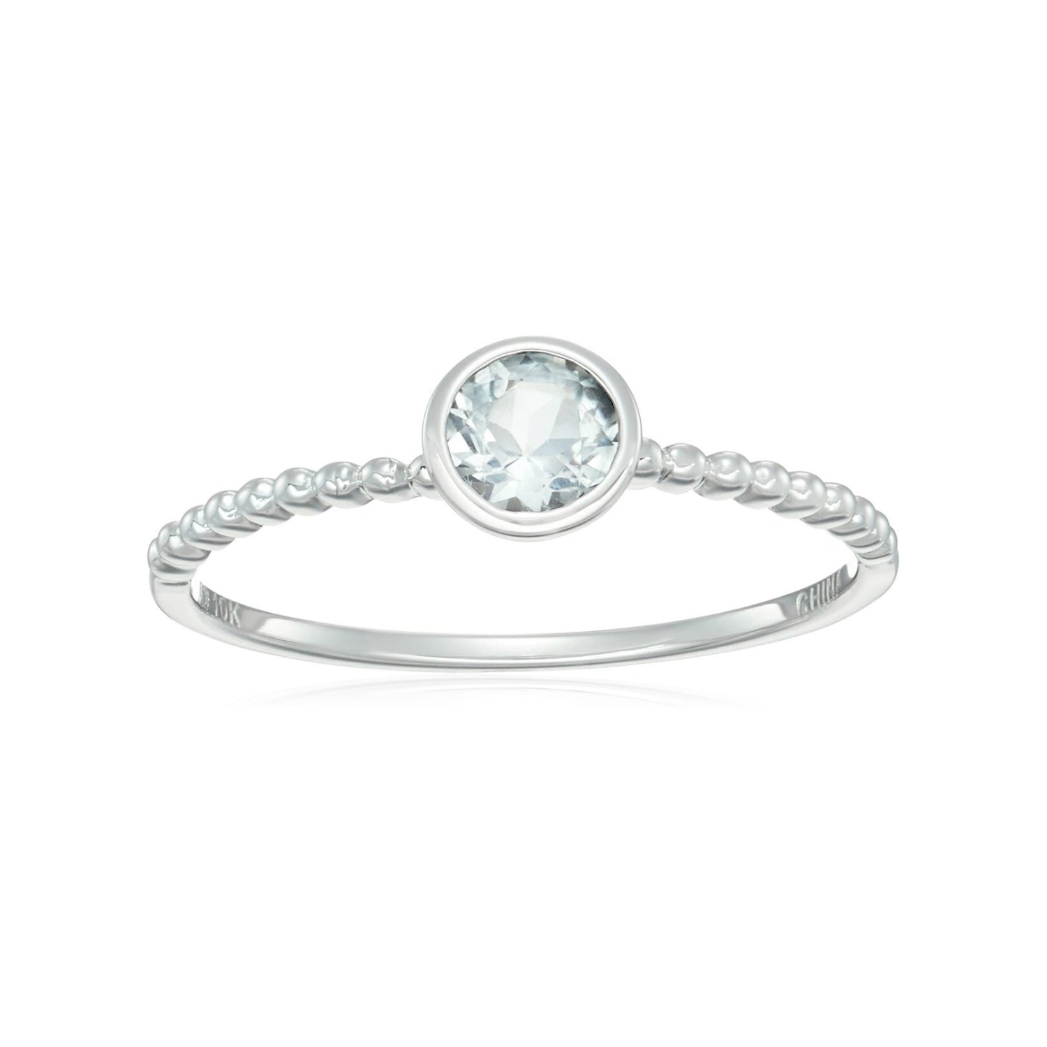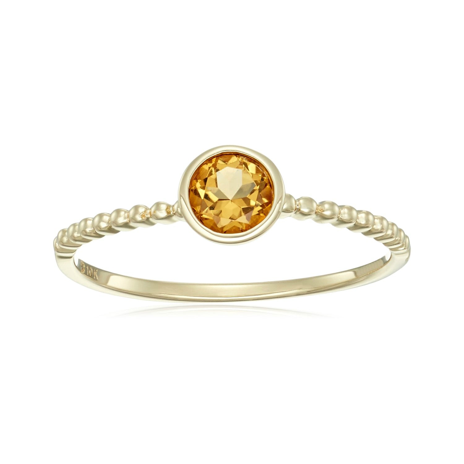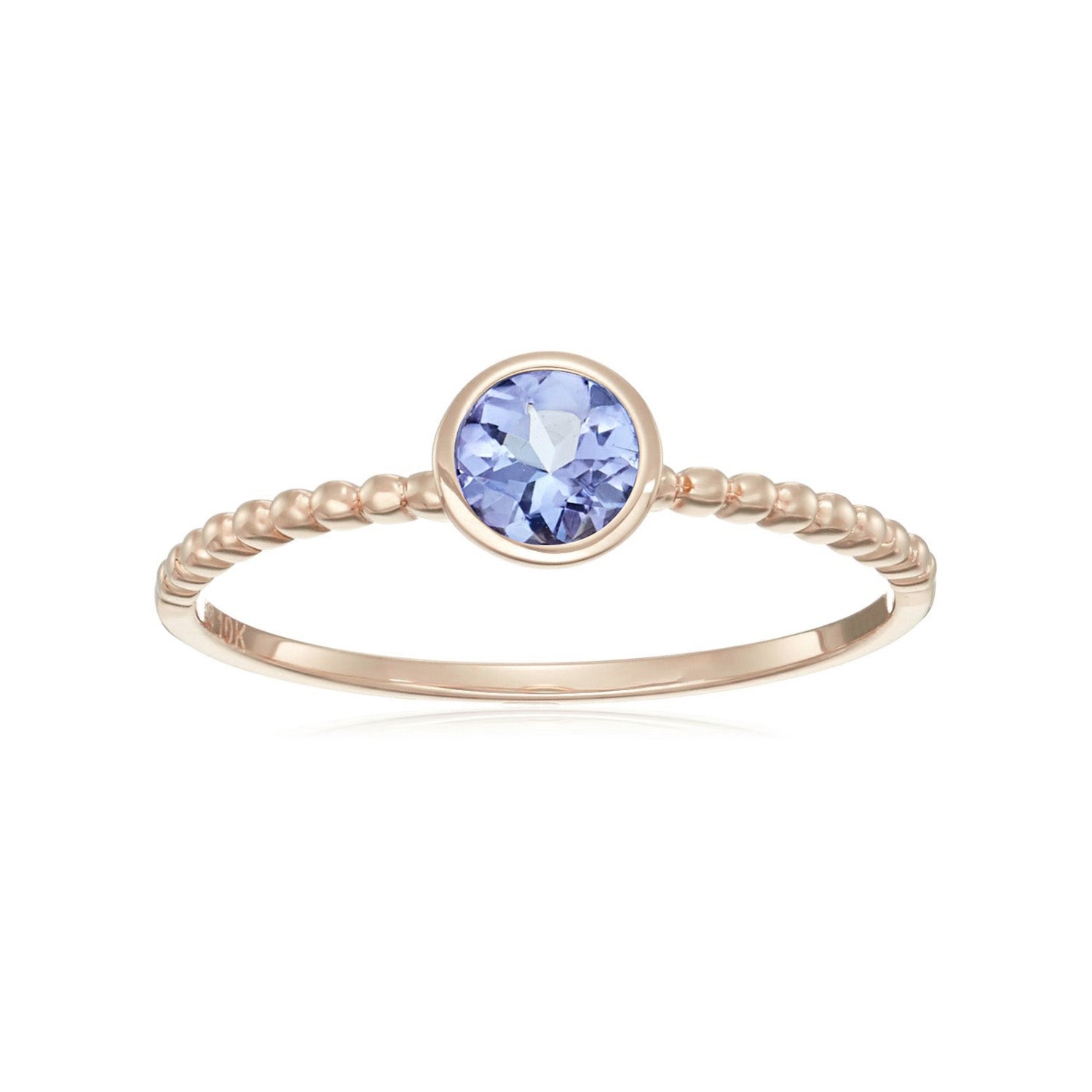 10k Multi Gemstone Option Solitaire Beaded Shank Stackable Ring