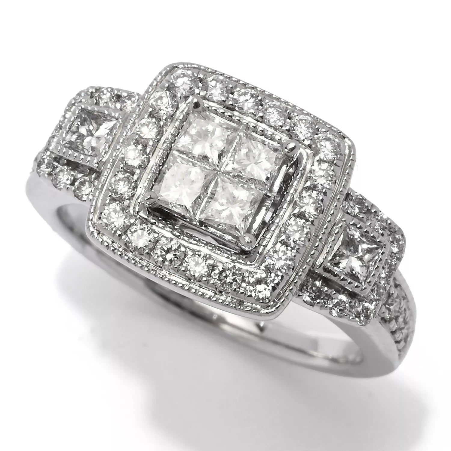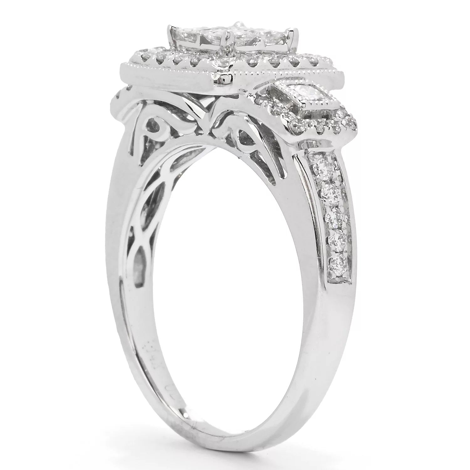 14K White Gold 0.97ctw Princess & Round Diamond Ring, 5.8 grams