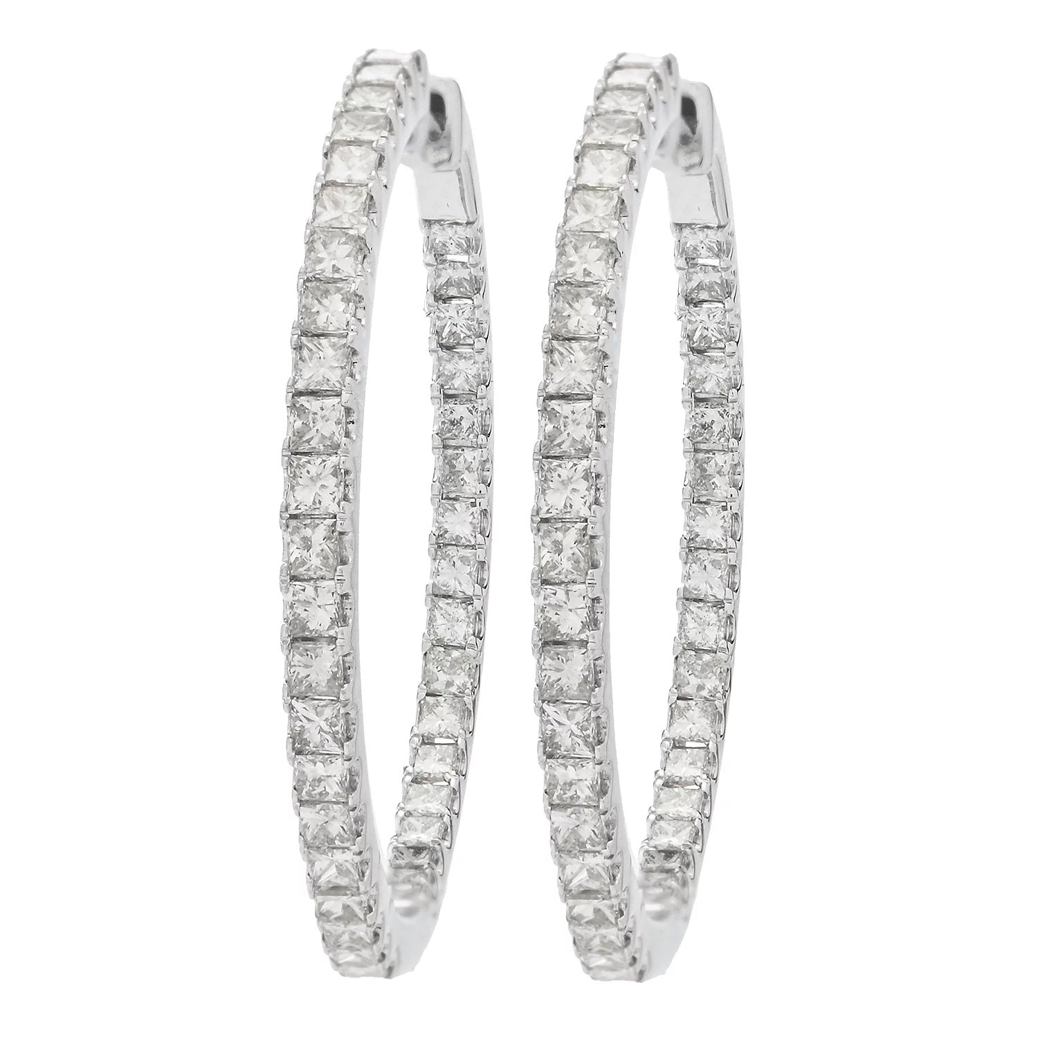 14K White Gold 1.97ctw Diamond Inside-Out Hoop Earrings, 1