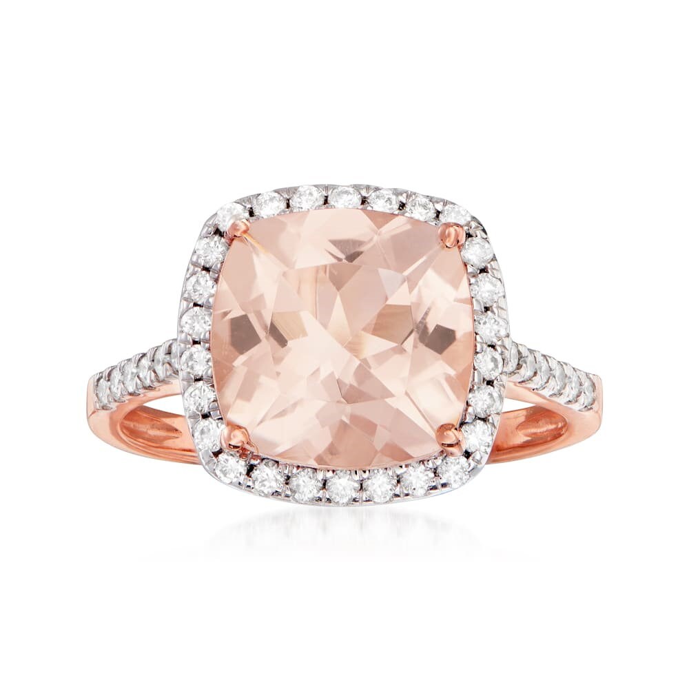 Pinctore 14kt Rose Gold Morganite and Diamond Gemstone Solitaire Ring