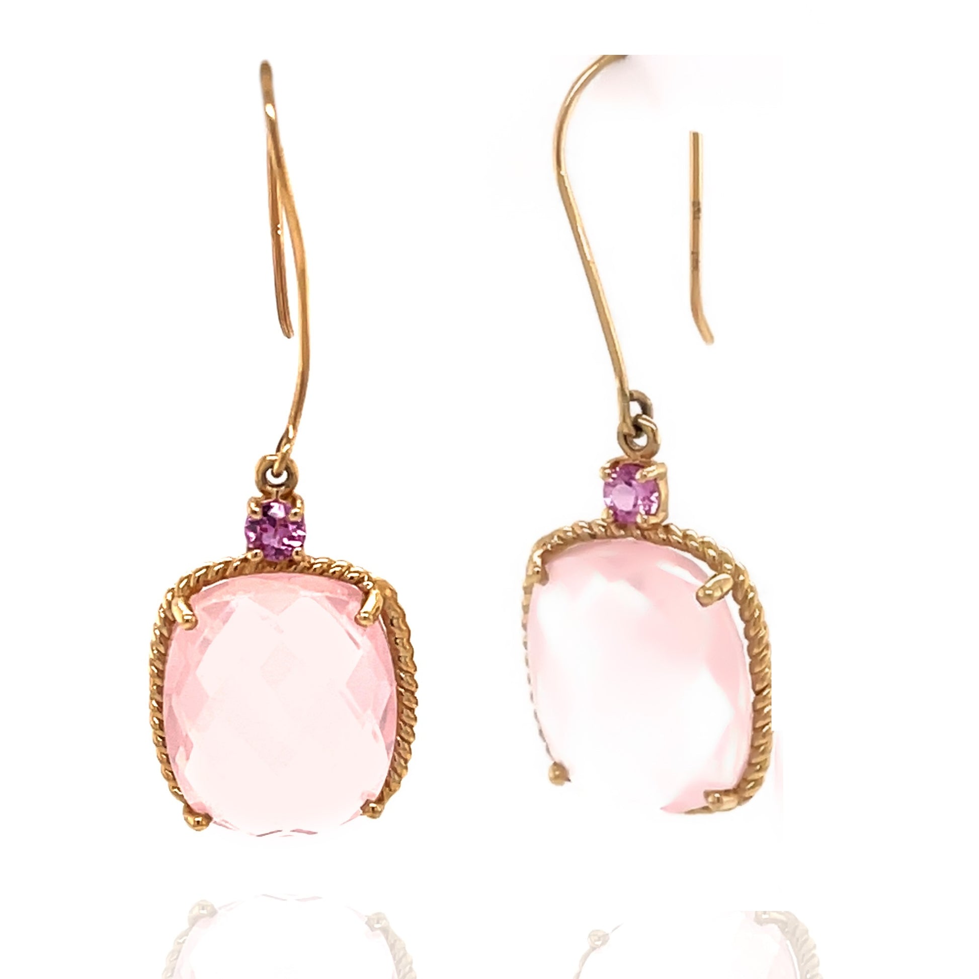 14K Yellow Gold Lemon Quartz and Rose Quartz Drop Earrings