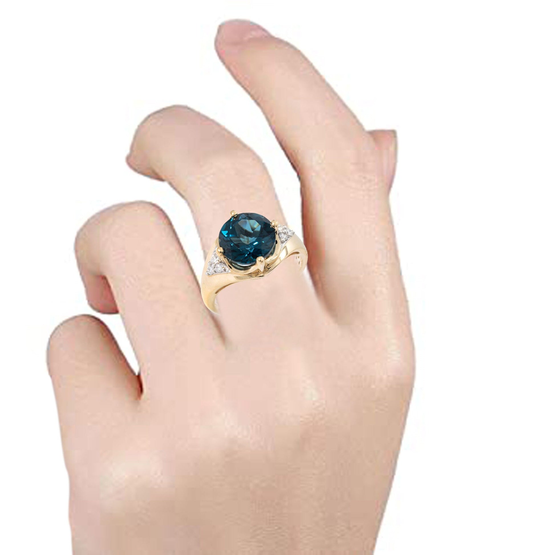 Elevate your jewelry collection with this exquisite ring featuring a striking London blue topaz centerpiece, beautifully complemented by sparkling diamonds, all set in luxurious 14k yellow gold.