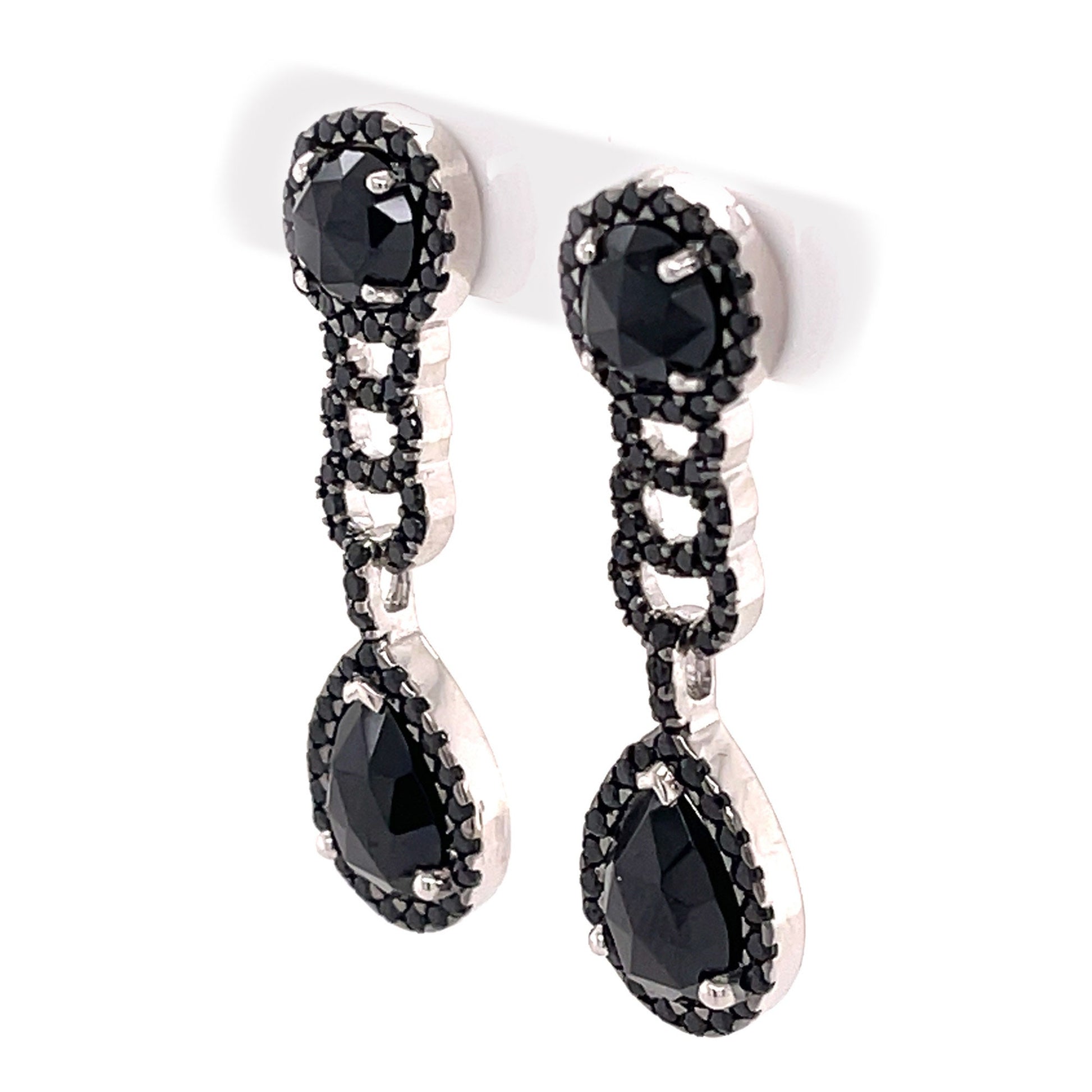 Elevate your style with these exquisite 925 Sterling Silver Black Spinel Dangle Earrings from Pinctore. Featuring a sleek design with luxurious rhodium plating, these earrings are perfect for adding a touch of sophistication to any outfit.