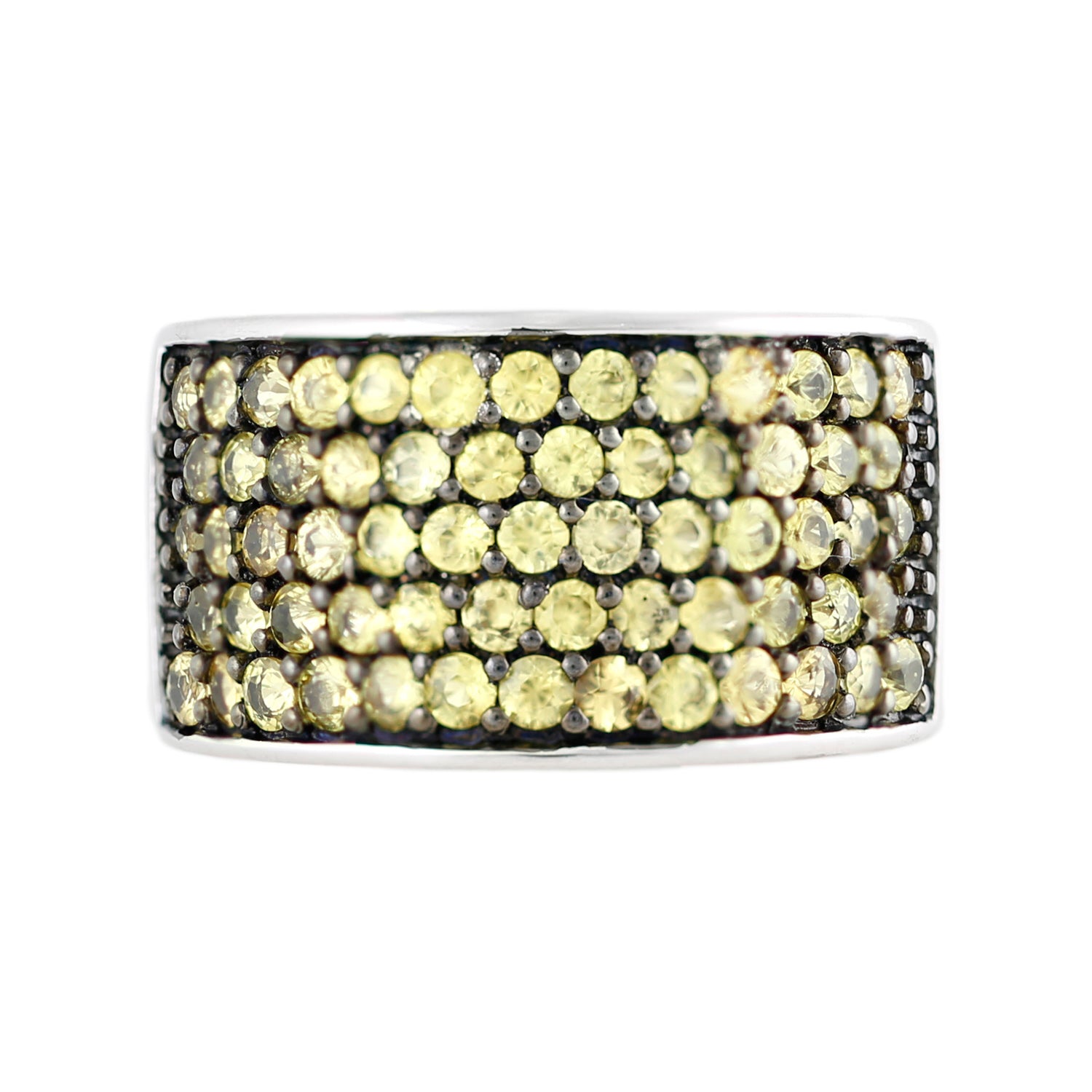 Pinctore 925 Sterling Silver Black Spinel & Yellow Sapphire Gemstone Band Rings