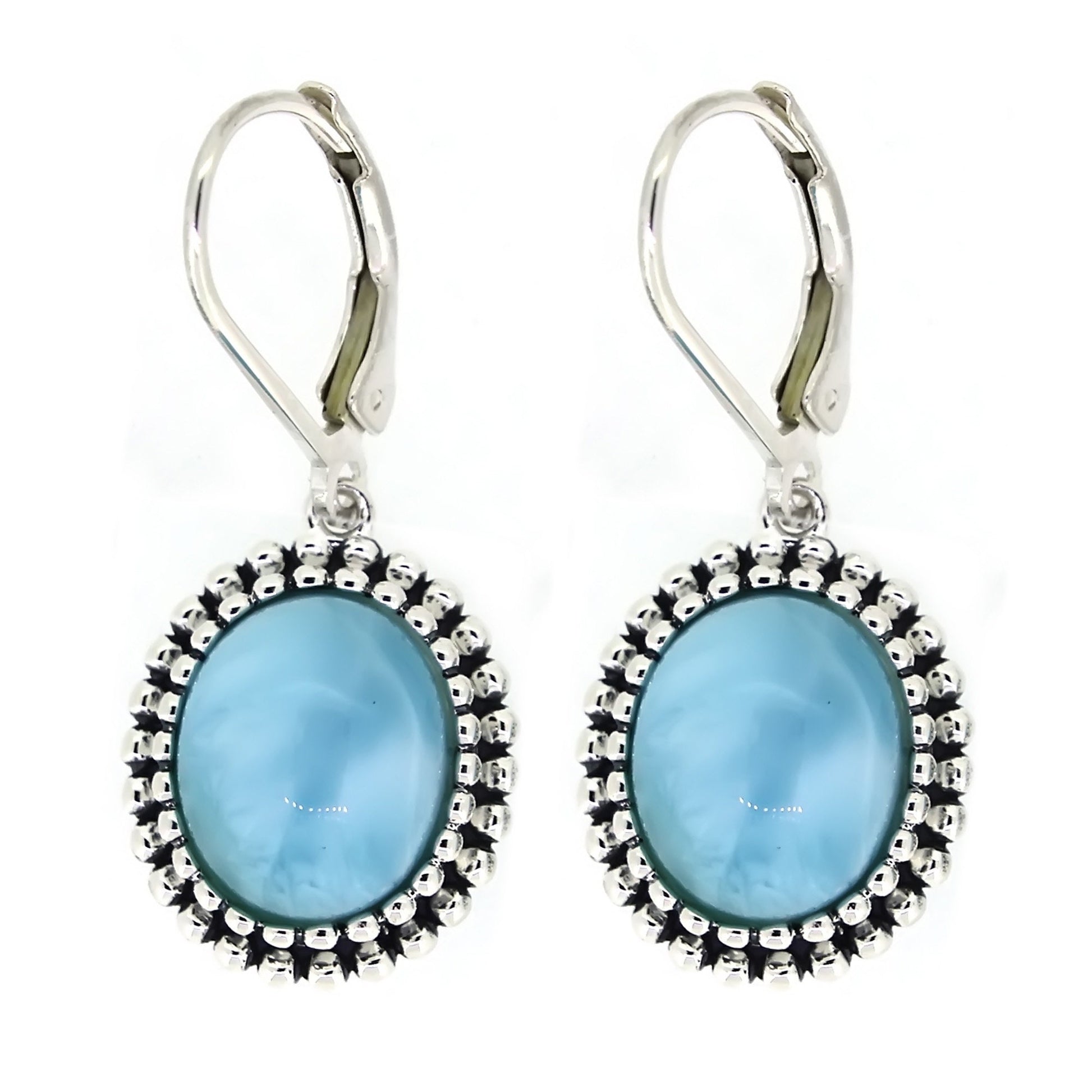 Add a touch of luxury and sophistication to your accessory collection with these stunning larimar dangle earrings.