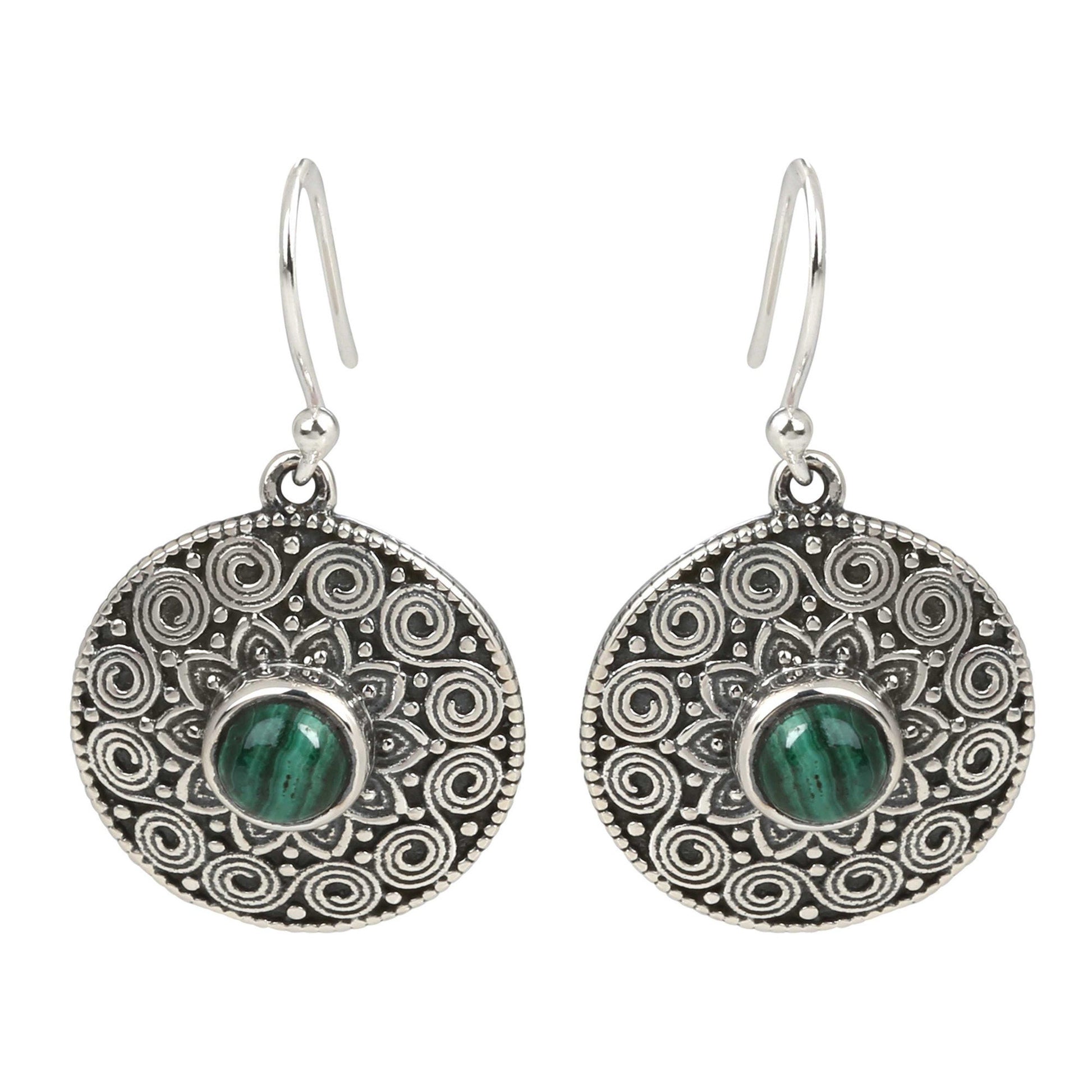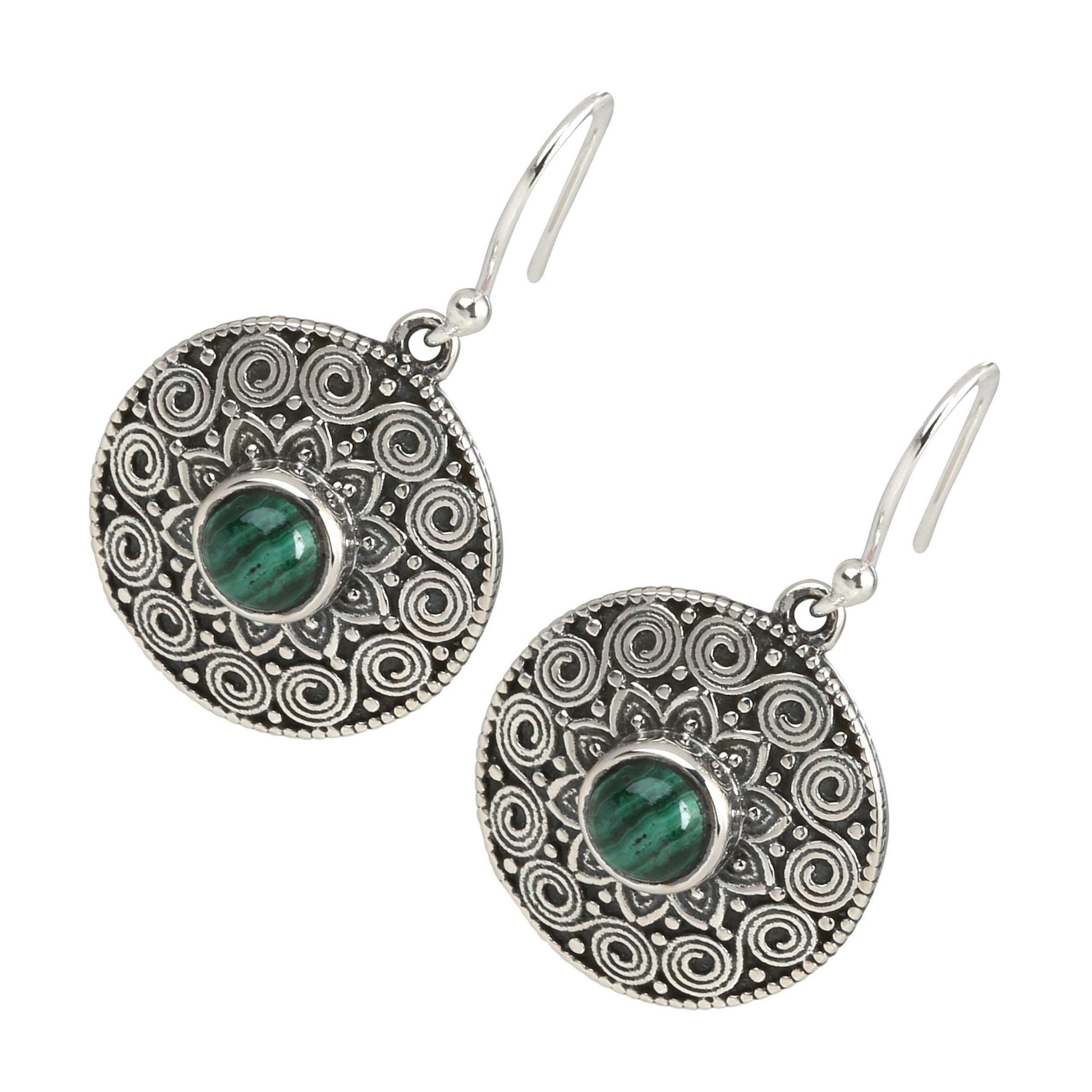925 Sterling Silver Malachite Dangle Earrings For Women's