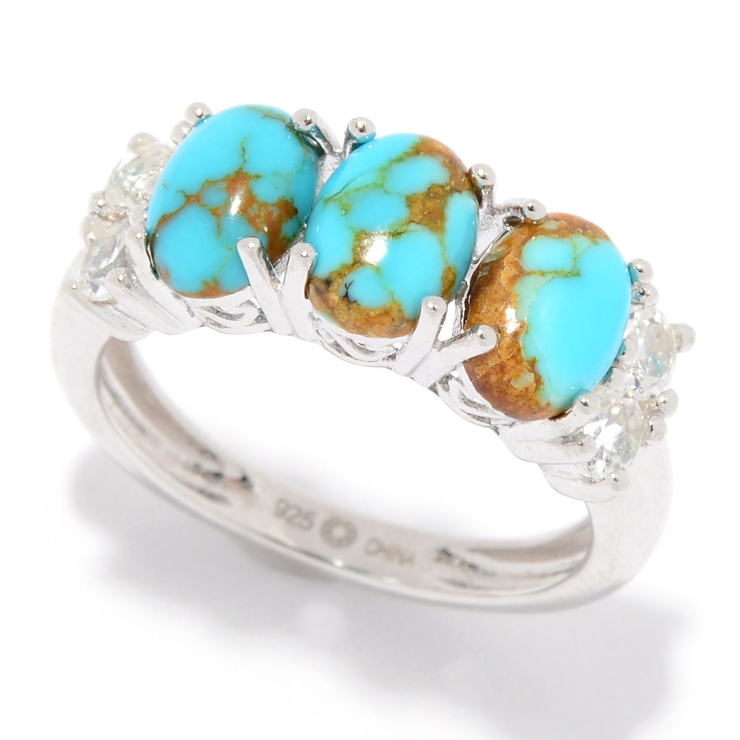 925 Sterling Silver Mine#8 Turquoise and White Topaz Ring