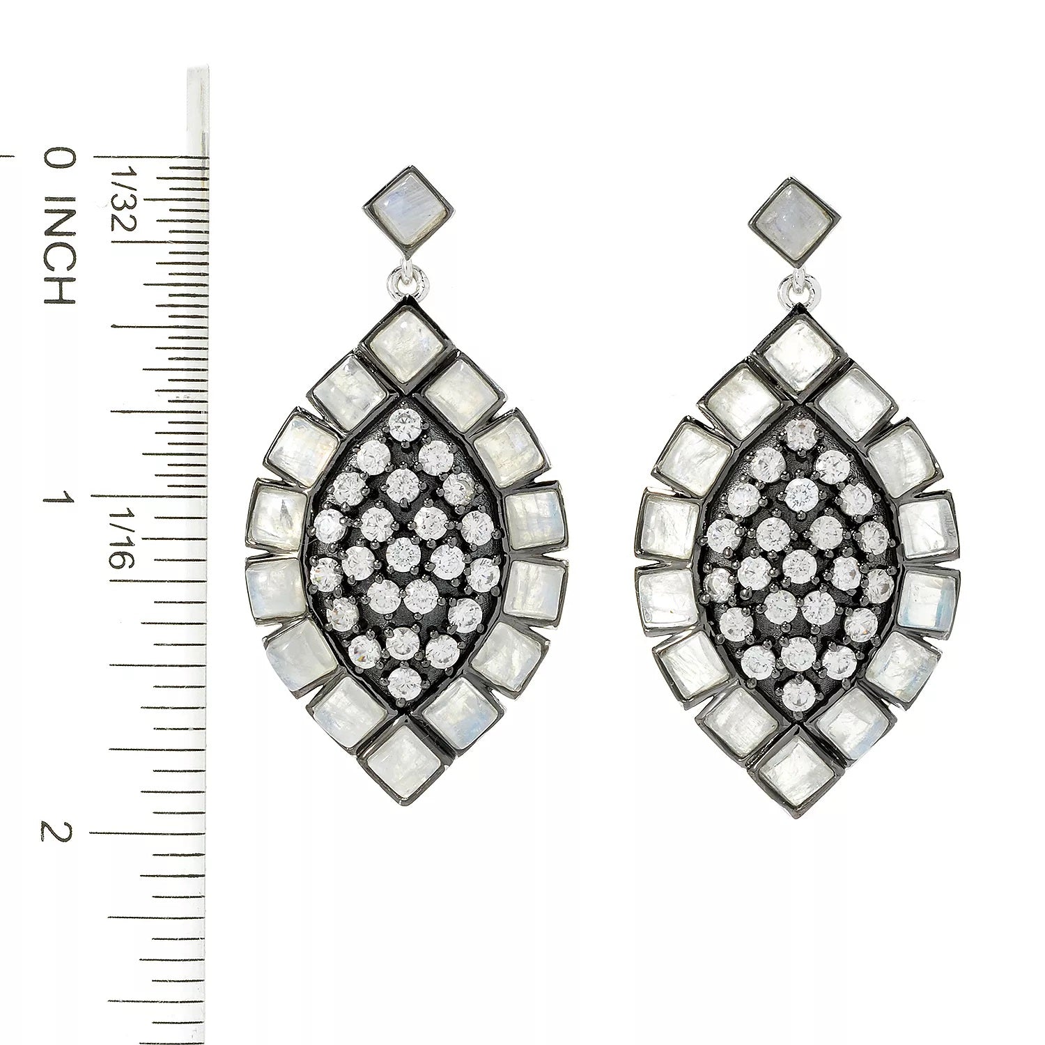 925 Sterling Silver Rainbow Moonstone and White Zircon Earrings