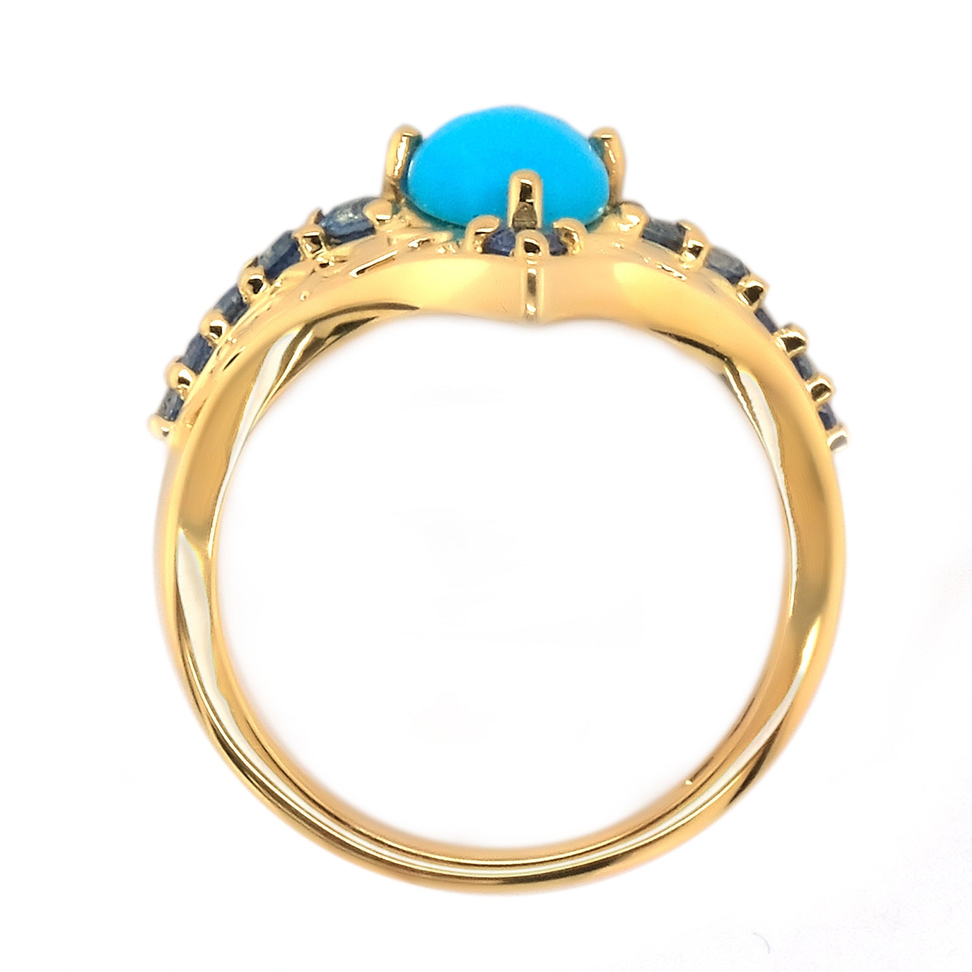Yellow Gold Plated Over Sterling Silver Sleeping Beauty Turquoise And Ceylon Blue Sapphire Gemstone Band Ring