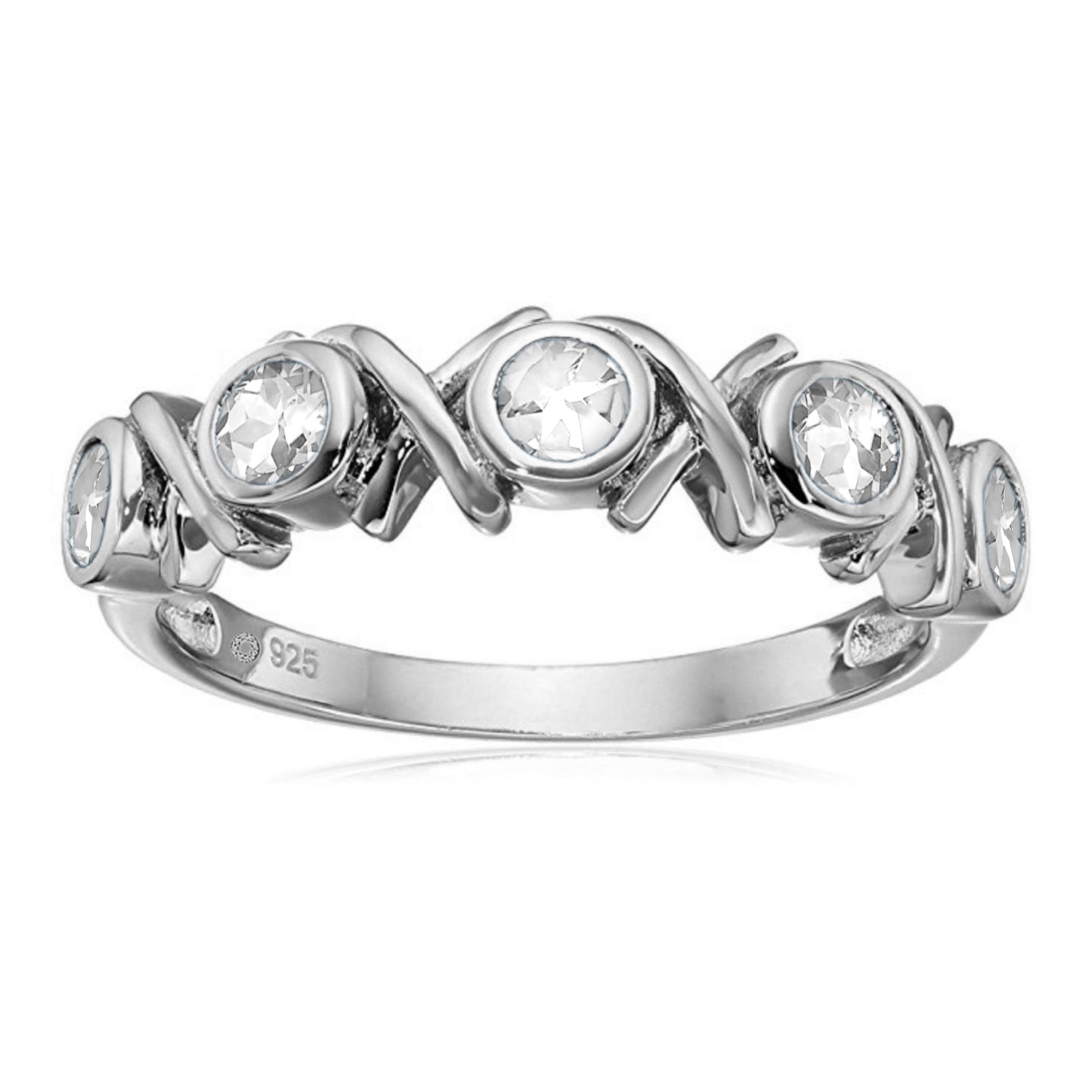 Celebrate love and connection with this enchanting 5-stone "XOXO" band ring crafted from 925 sterling silver and beautifully finished with a rhodium overlay. Featuring a selection of vibrant gemstones like tanzanite and white topaz, this ring makes a stunning statement of affection.