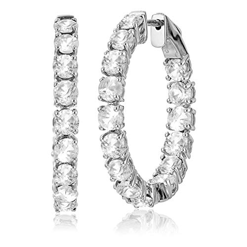 925 Sterling Silver White Natural Zircon Hoop Earrings