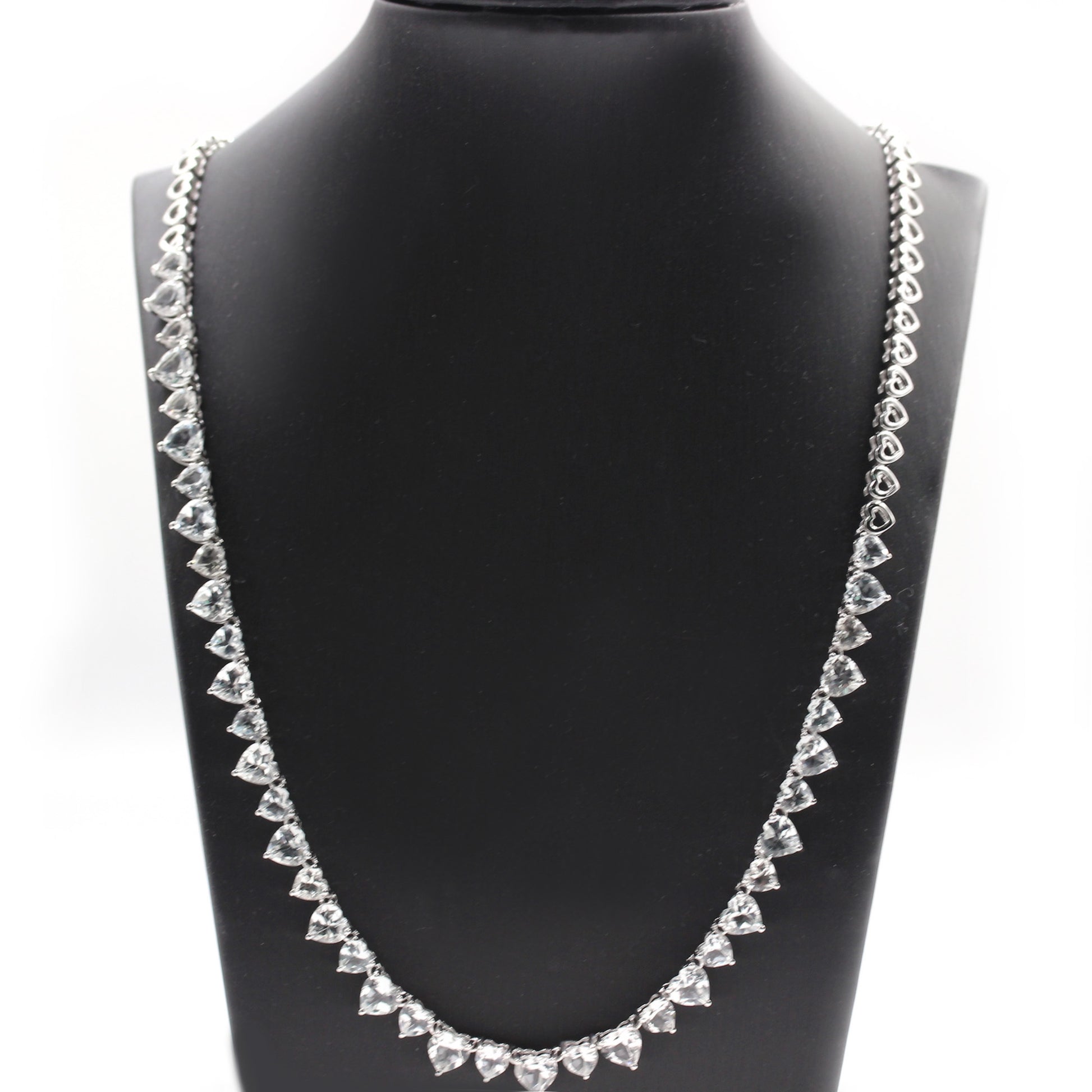 Elevate your elegance with the 925 Sterling Silver White Topaz Gemstone Necklace. This exquisite piece features sparkling white topaz gemstones, meticulously set in heart shapes. The necklace, crafted in high-quality 925 sterling silver, offers a timeless and refined touch to any ensemble. With heart-shaped white topaz stones in sizes of 6mm and 5mm, set in a secure prong setting, this necklace is perfect for adding a touch of sophistication and romance to your jewelry collection.