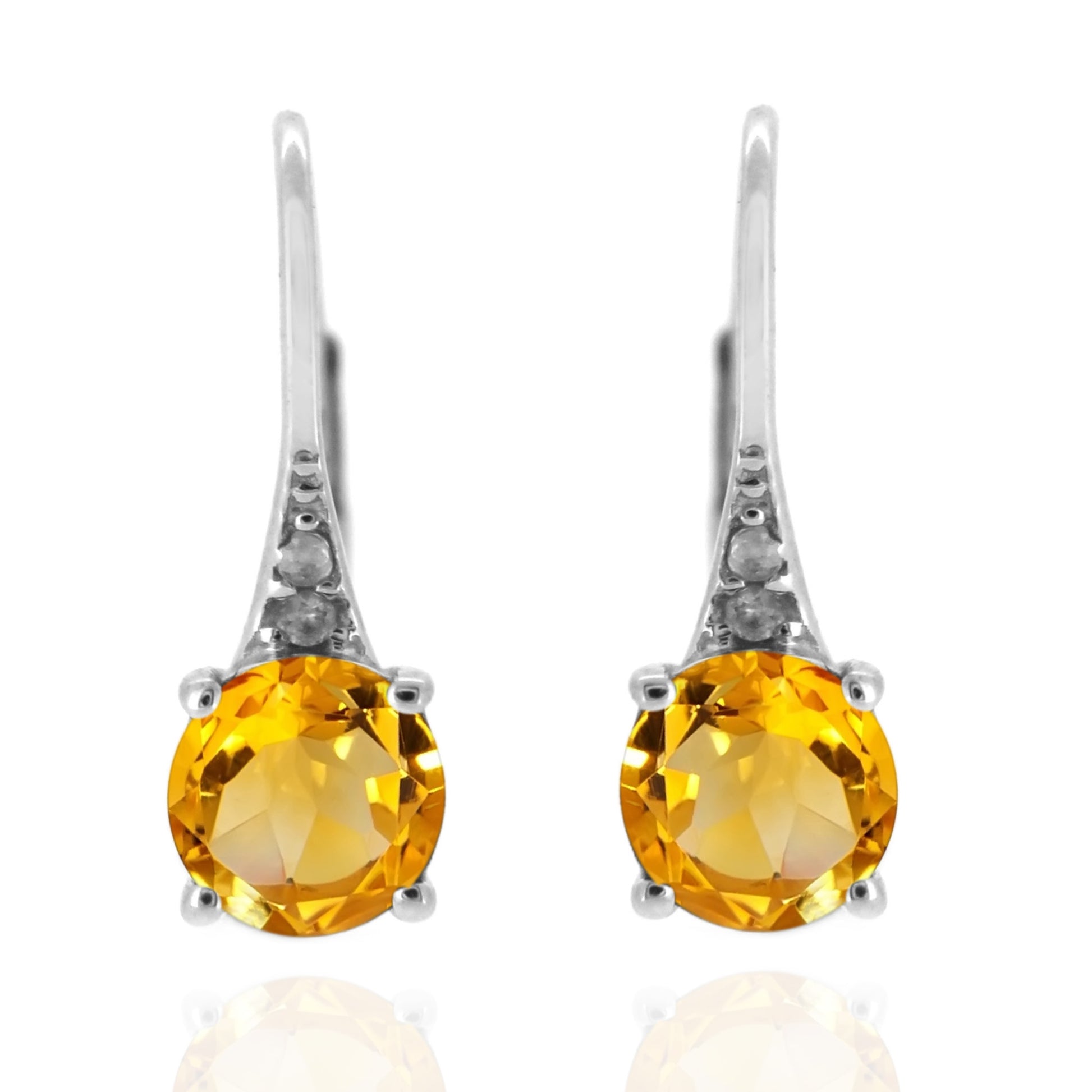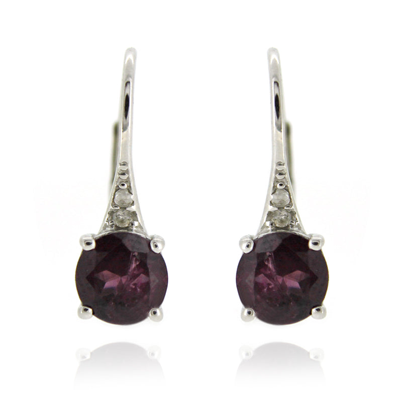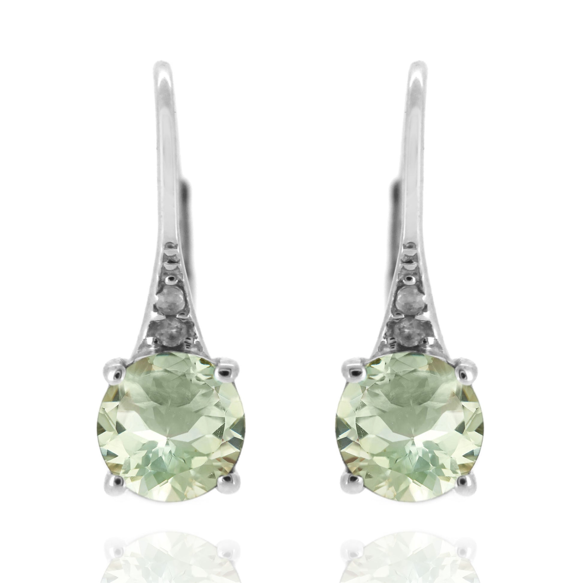 925 Sterling Silver With 6mm Round Brazilian Amethyst, Diamond Dangle Earrings
