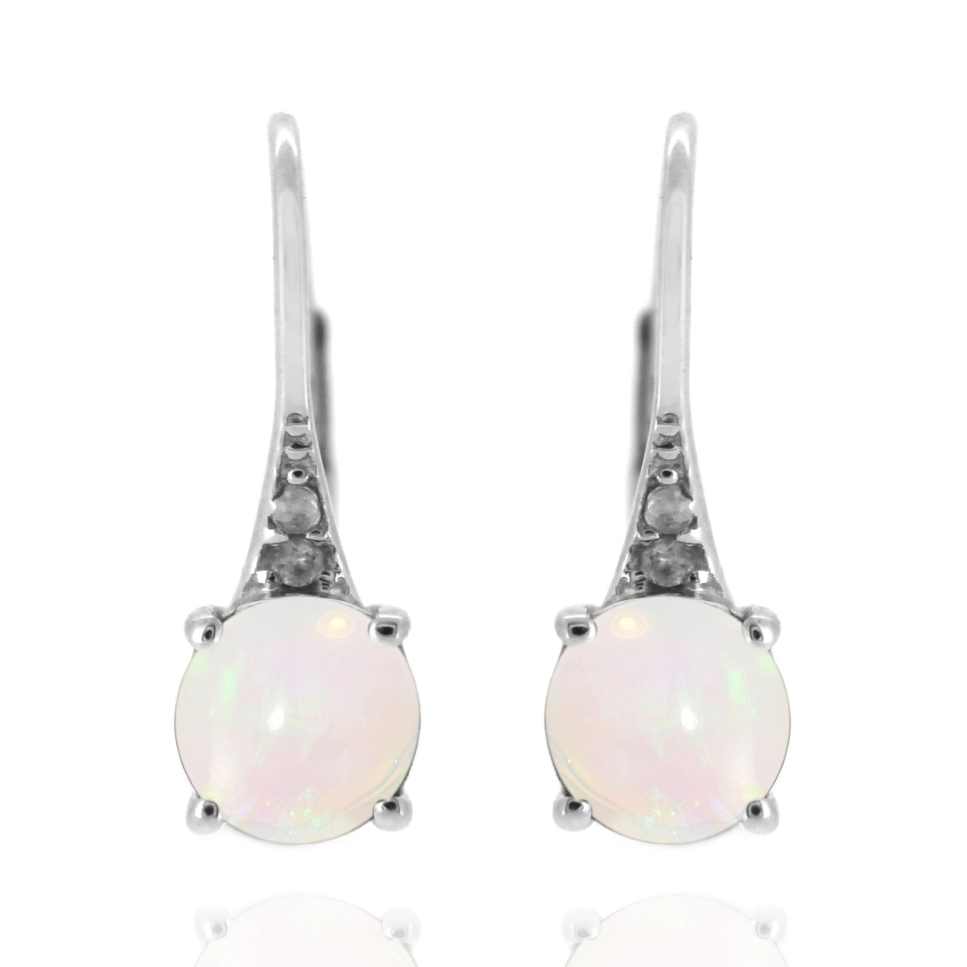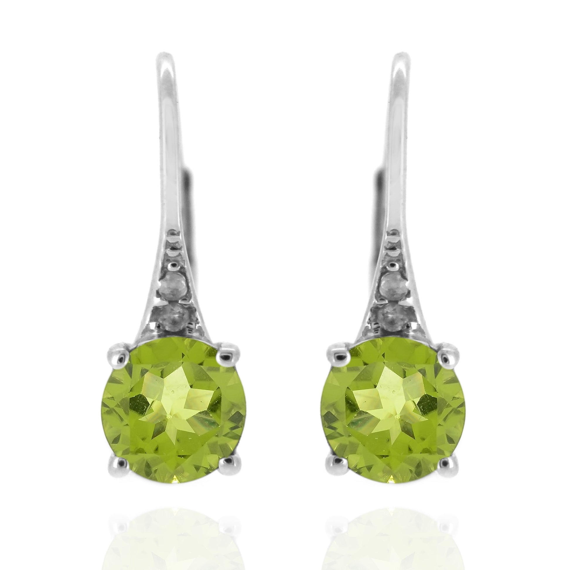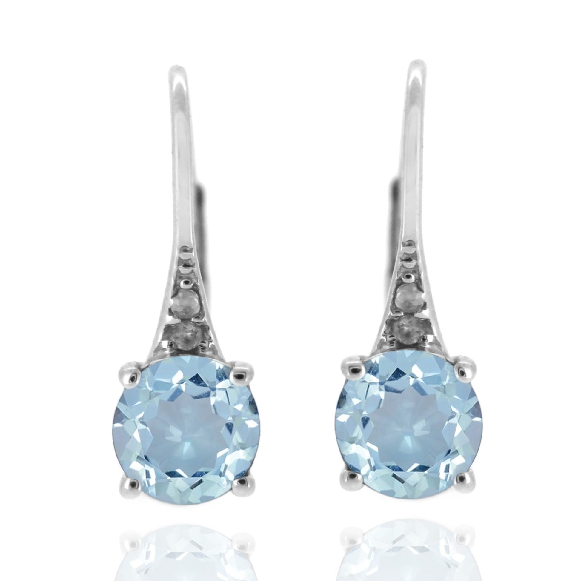 925 Sterling Silver 6mm Round Multi-Gemstone with Diamond Dangle Earrings
