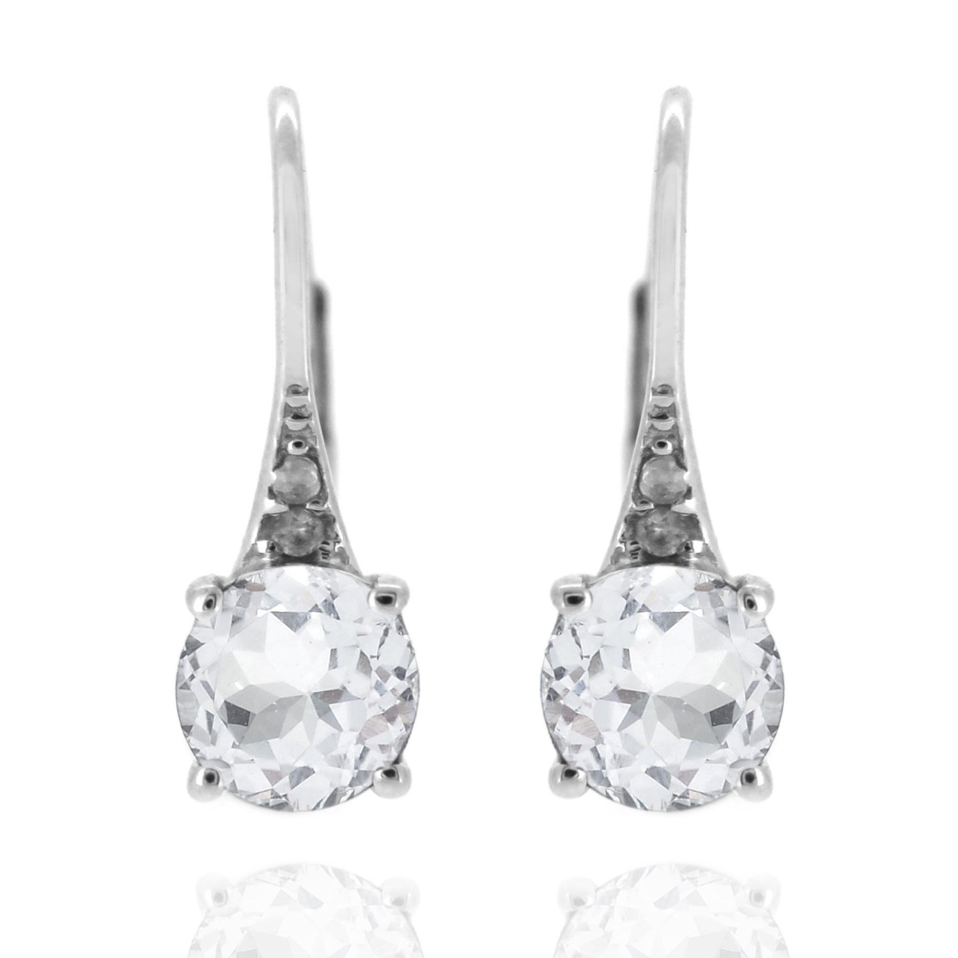 Elevate your jewelry collection with these striking dangle earrings, featuring a stunning array of 6mm round gemstones set in luxurious sterling silver and adorned with sparkling diamonds.