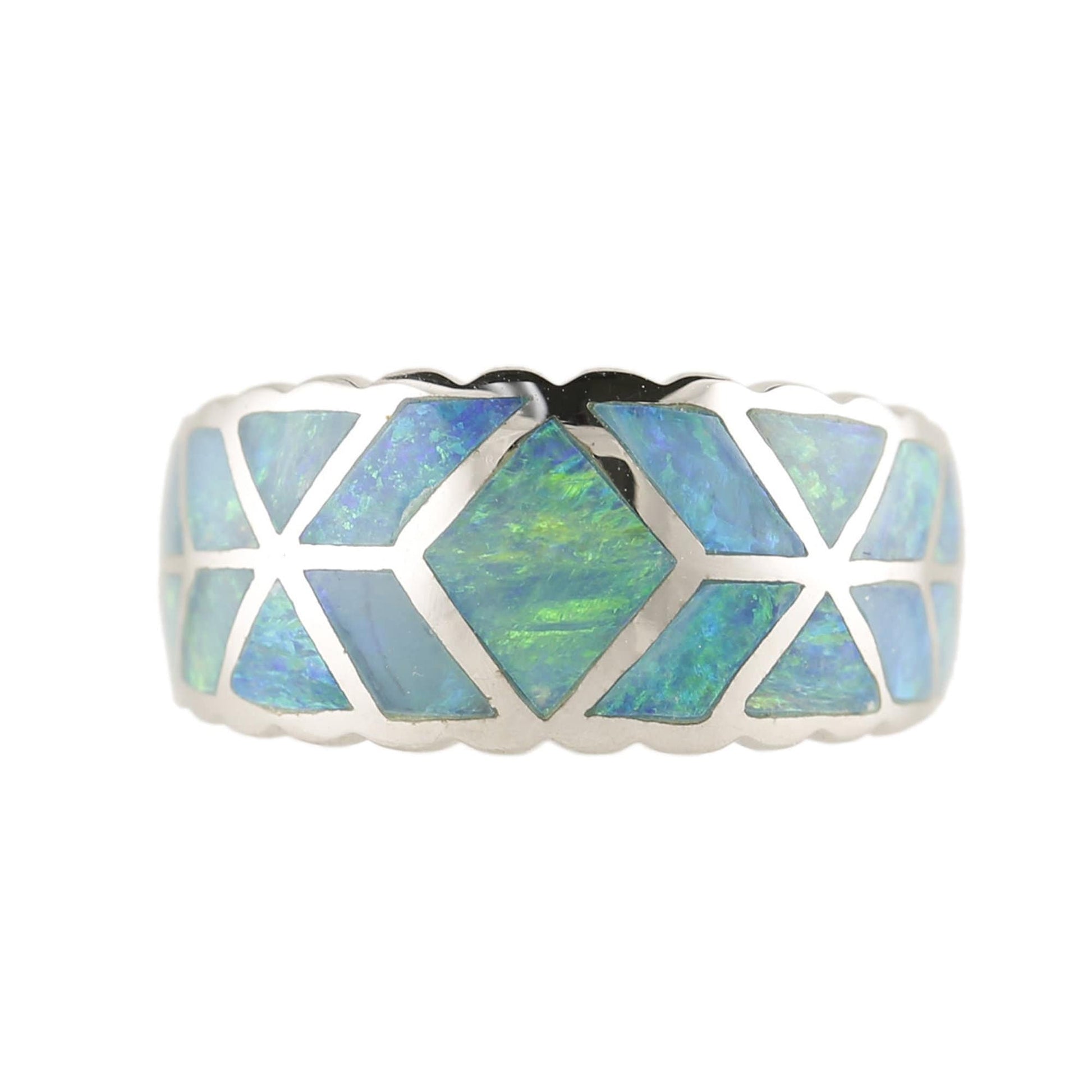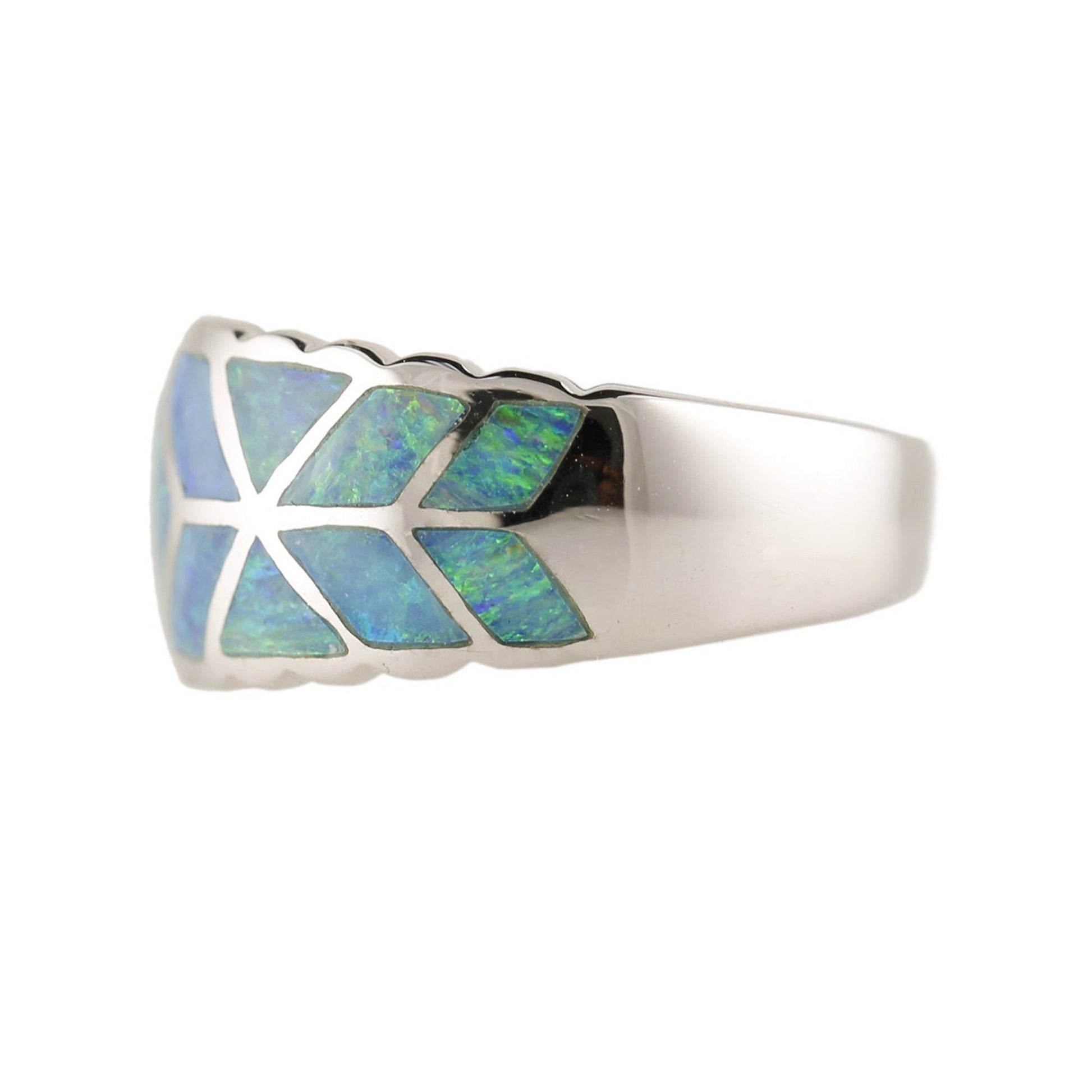 925 Sterling Silver Australian Boulder Opal Fancy Cut Gemstone Band Ring