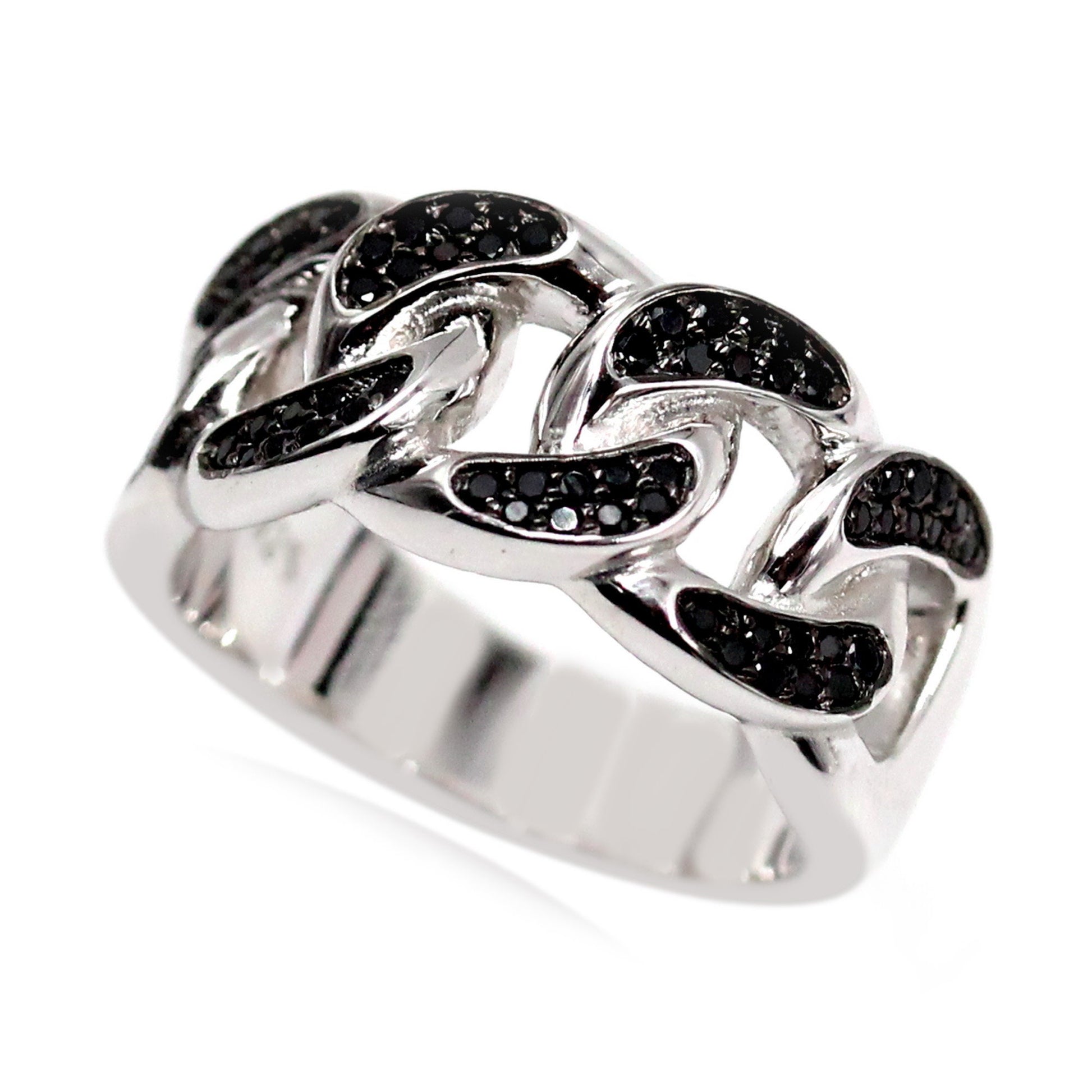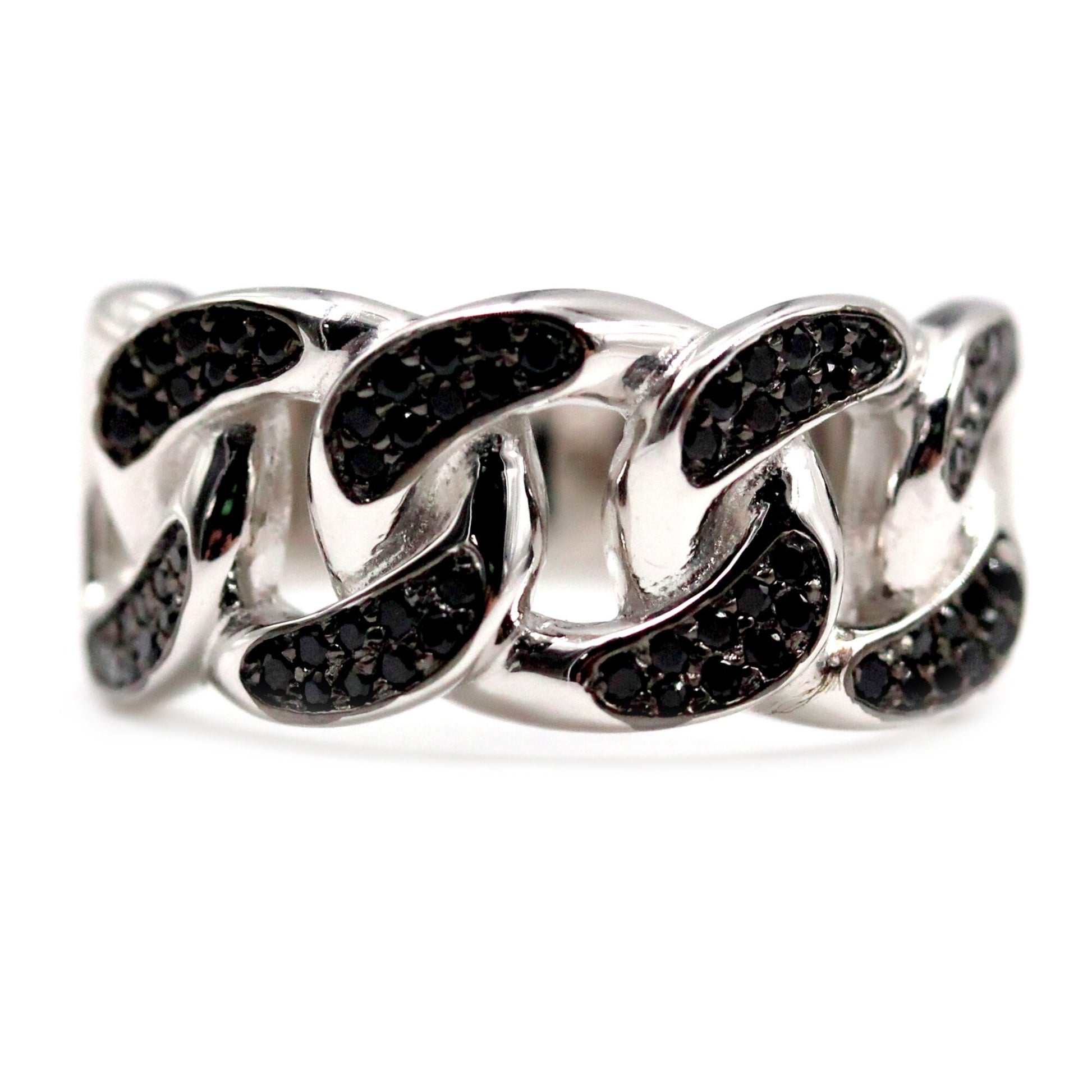 - Sleek Band Design: A stylish band ring featuring a row of round black spinel stones for a contemporary look.