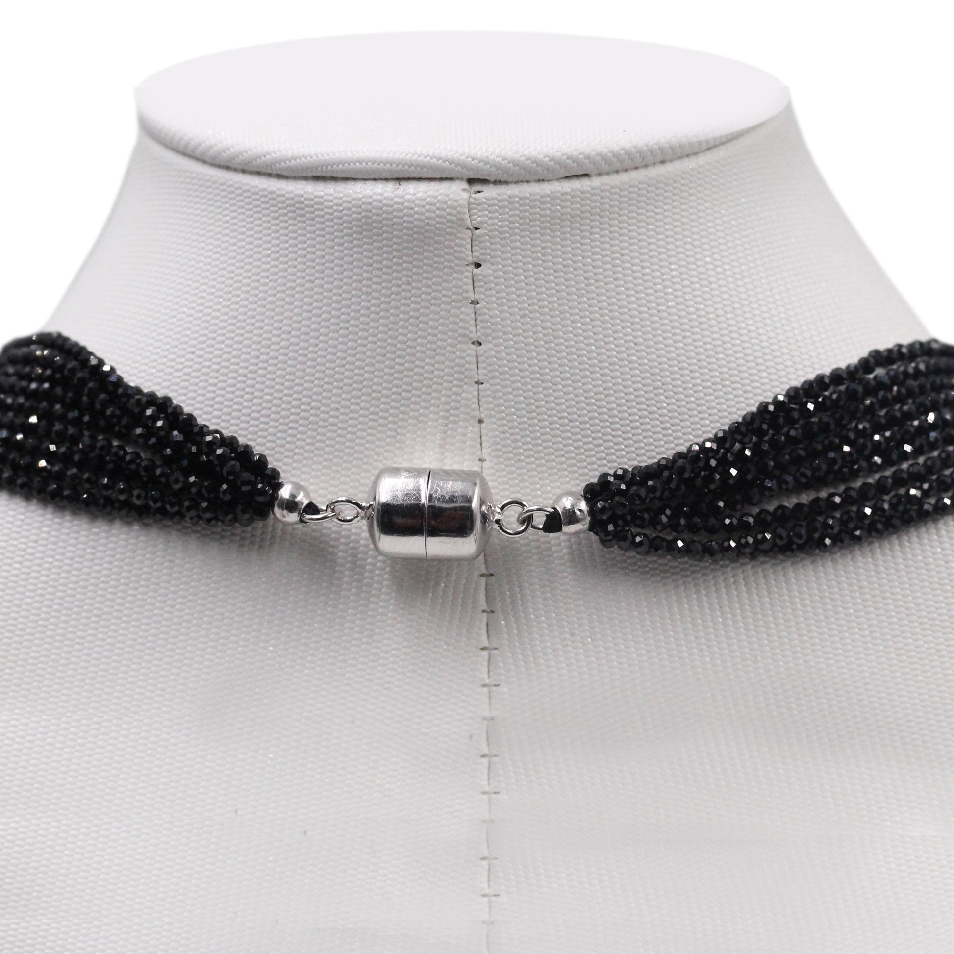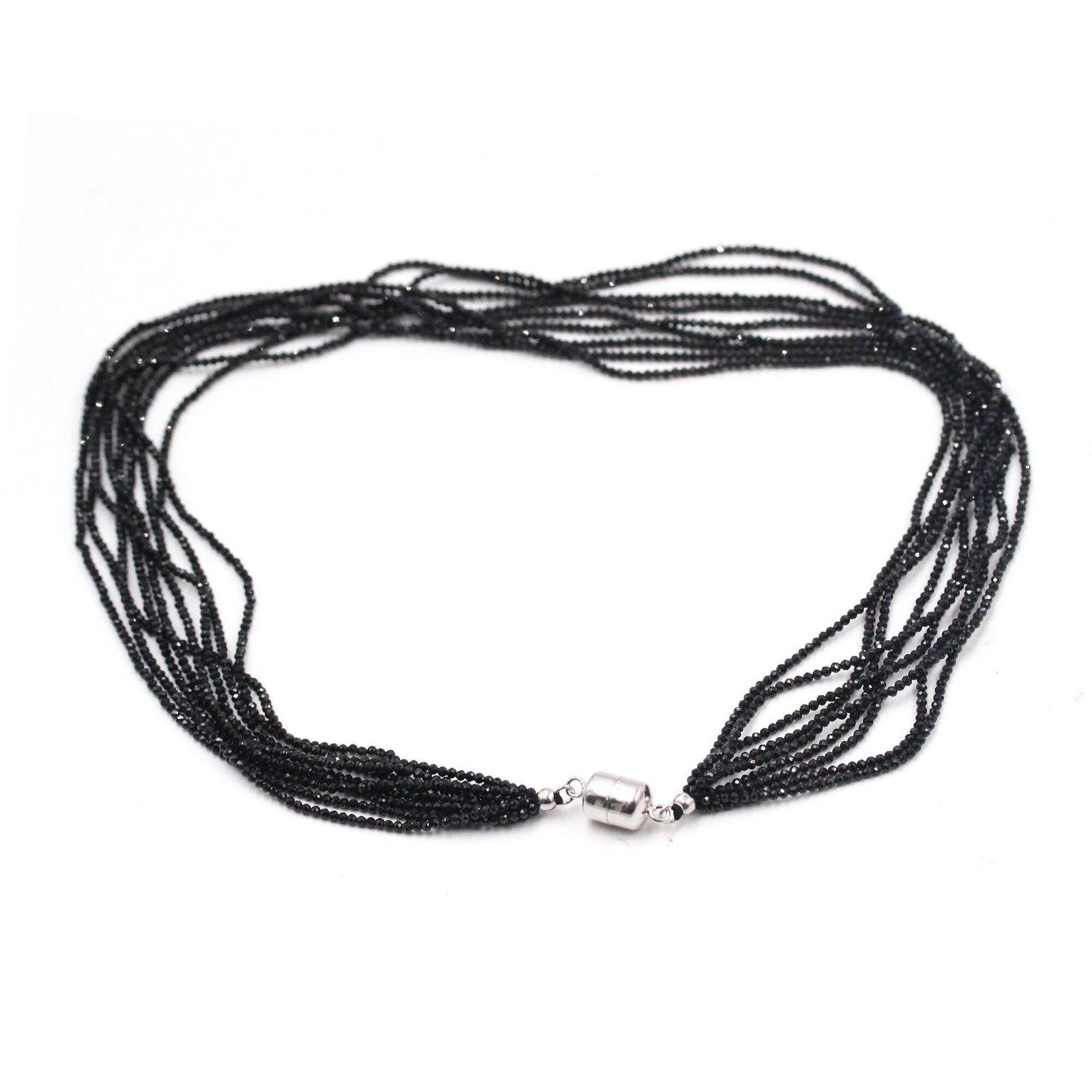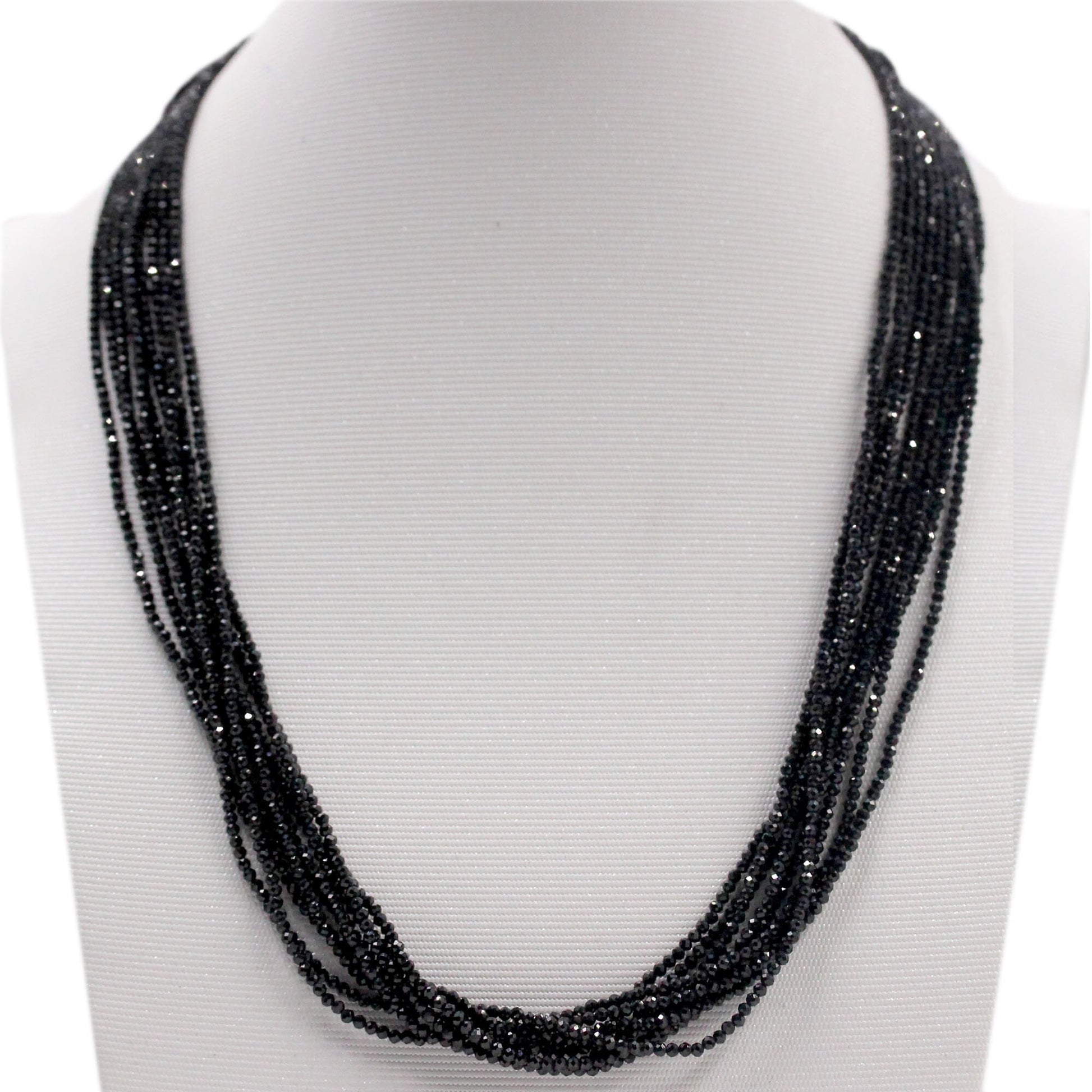 This elegant necklace showcases natural black spinel gemstones in a luxurious and refined design. The necklace features nine lines of faceted round beads, each meticulously crafted to enhance the deep, rich color and brilliance of the black spinel.