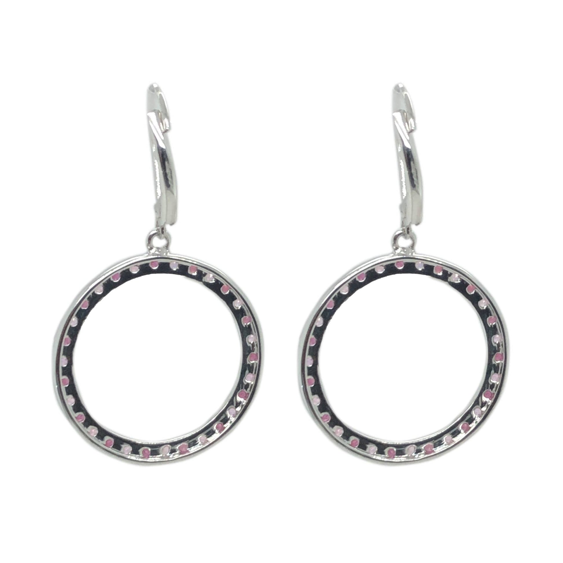 The Pink Sapphire and Rhodolite Garnet earrings showcase the soft pink of sapphire paired with the rich, reddish-purple of rhodolite garnet, also in 2mm round stones, for a charming and romantic appeal.