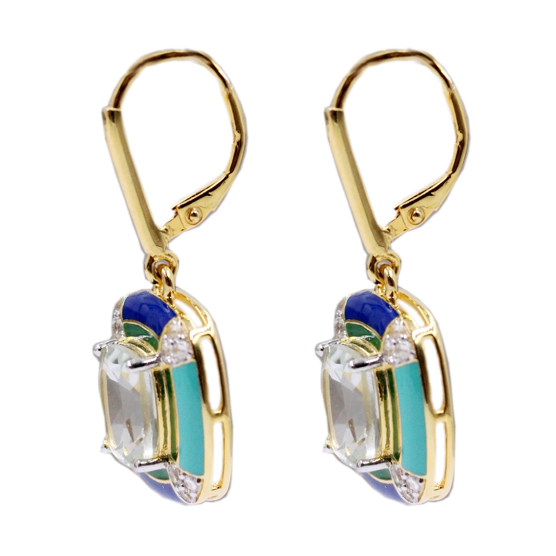Infuse your jewelry collection with sophistication and color with these stunning dangle earrings. Featuring a luxurious yellow gold plating over sterling silver, these earrings showcase the serene beauty of green amethyst gemstones. The combination of cushion-cut and round-cut stones in various sizes creates a refined and eye-catching design perfect for any occasion.