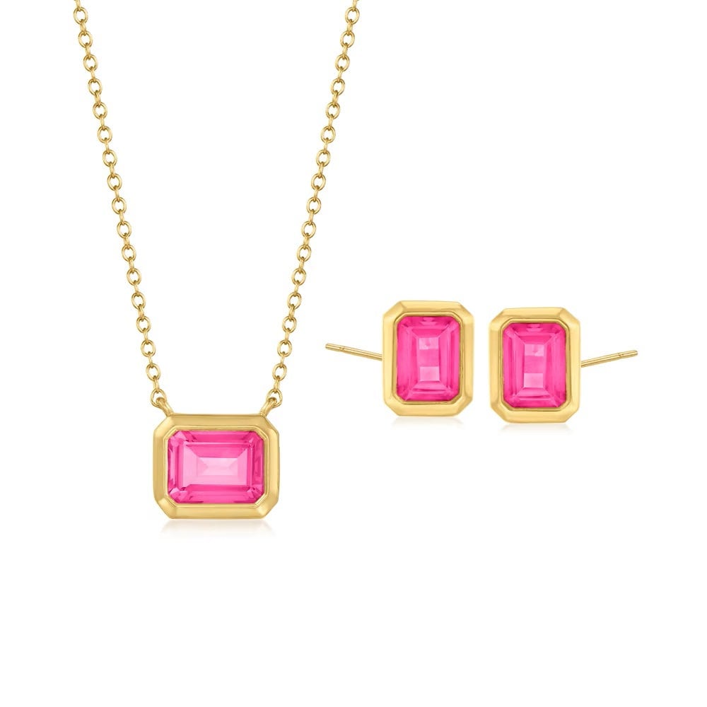 - Elegant Design: This stunning set features an exquisite combination of octagon-shaped gemstones, elegantly showcasing the beauty of Indian Ruby, African Amethyst, and Pink Topaz.