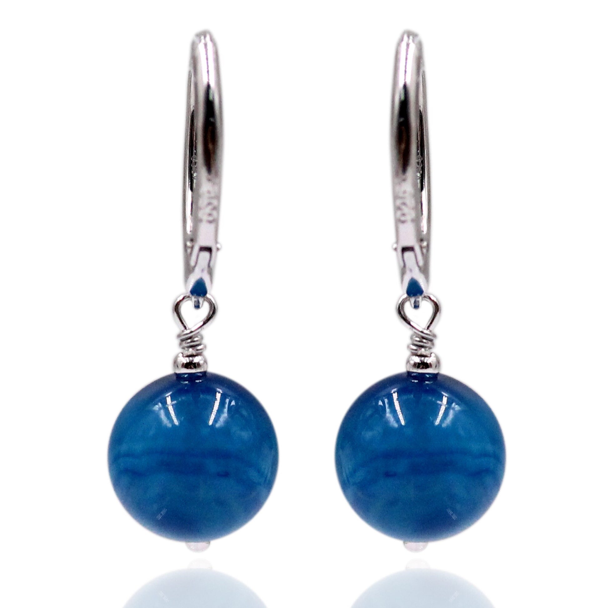 925 Sterling Silver Pink Agate And Aqua Agate Beads Gemstone Bracelet And Earrings Set