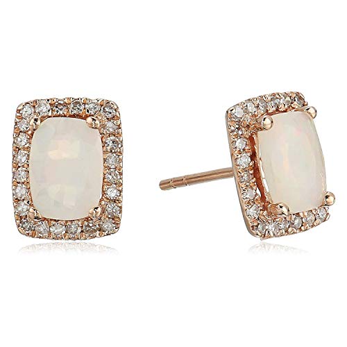 Pinctore 10k Rose Gold Ethiopian Opal & Diamond Princess Diana Stud Earrings
