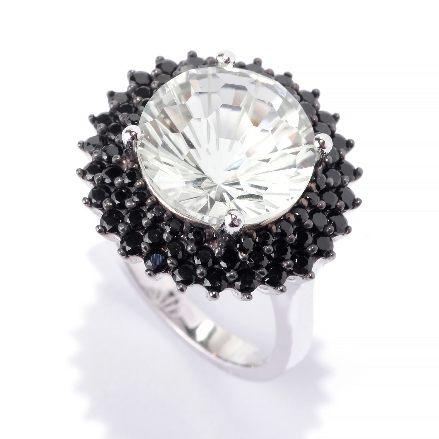 Pinctore 18K Rose Vermeil Over Silver 12mm Round Pink Amethyst,Black Spinel Halo Cocktail Rings