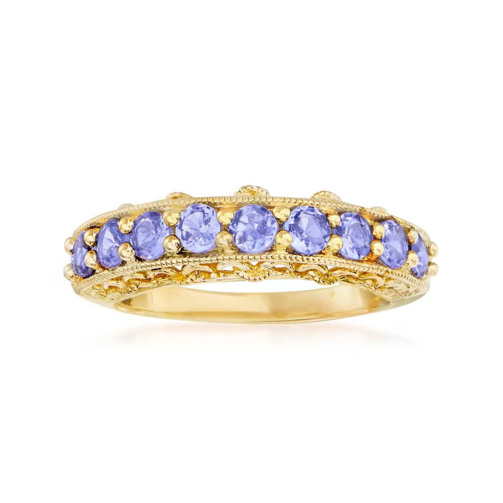 Description: Enhance your jewelry collection with this exquisite multi-gemstone band ring from Pinctore. Crafted with 925 sterling silver and finished with 18K yellow gold plating, this stunning ring features a vibrant array of gemstones including chrome diopside, tanzanite, black spinel, fire opal, aquamarine, pink tourmaline, and white zircon. Each round gemstone, set in a secure prong setting, creates a dazzling display that adds a splash of color to any outfit.