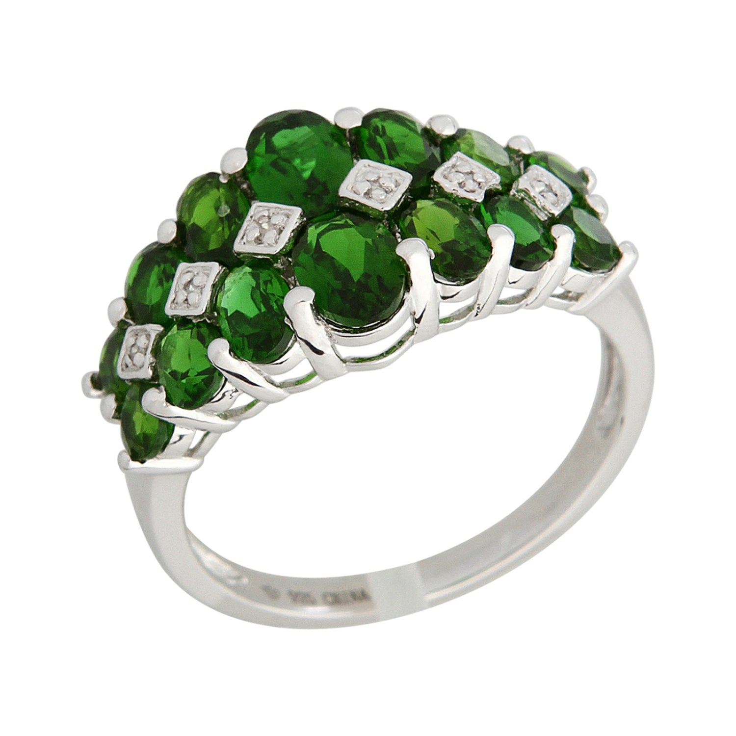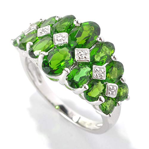 Pinctore Platinum Over Sterling Silver Chrome Diopside and Diamond Accent Graduated Band Ring