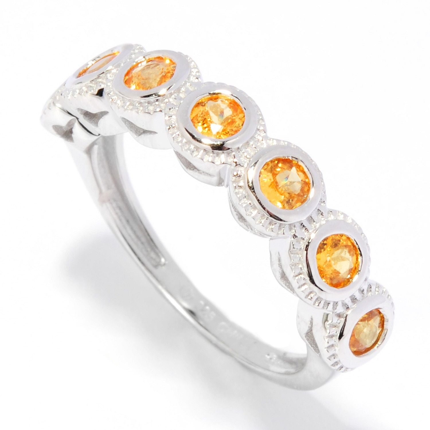 Pinctore Sterling Silver 0.87ctw Seven Stone Rhodolite Garnet Band Rings