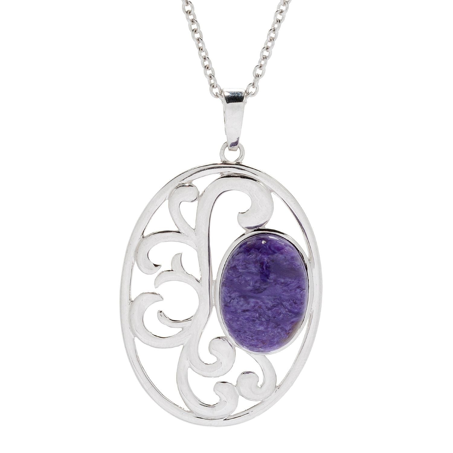 - Charoite: 18x13mm oval cabochon