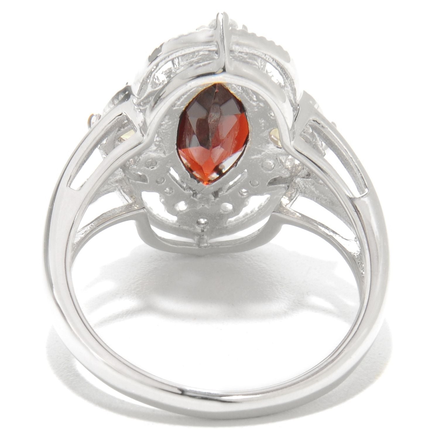 Description: This exquisite solitaire ring features a stunning 2.86 carat total weight of red garnet, beautifully complemented by citrine and sparkling white zircon accents. Crafted from high-quality sterling silver, the ring showcases marquise and pear-shaped gemstones, creating an eye-catching design that is perfect for both women and girls. With its elegant prong setting, this ring adds a touch of sophistication to any outfit.