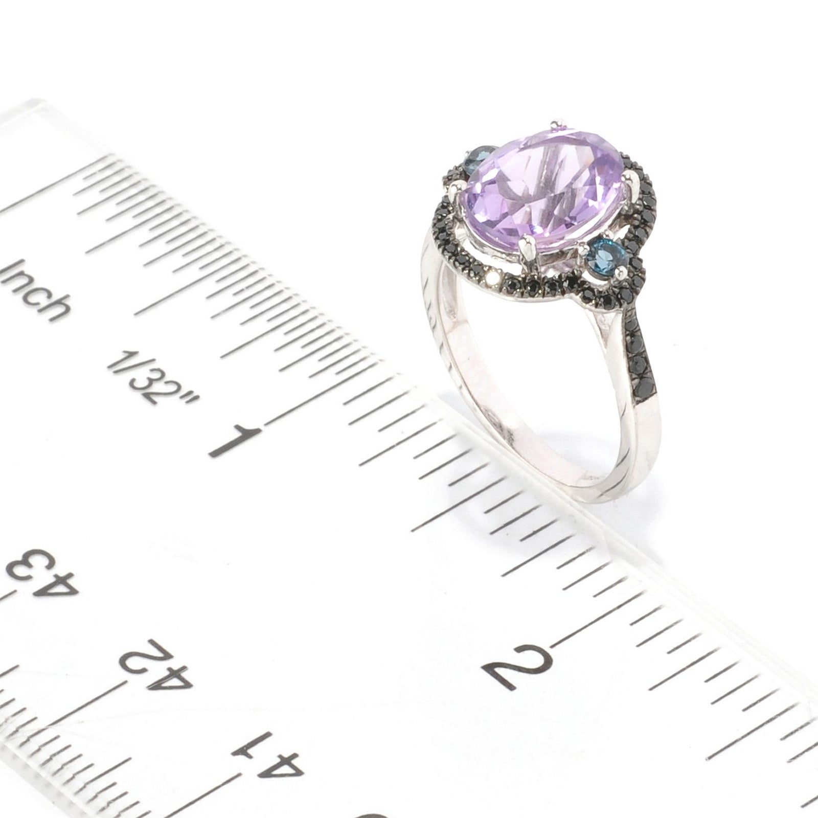 Indulge in the exquisite beauty of the Pinctore Sterling Silver 2.87ctw African Amethyst Cocktail Ring. This stunning piece features a striking oval African amethyst at its center, weighing 2.52 carats, showcasing a rich, vibrant purple hue that captures the light beautifully. Graded 3A, this natural gemstone is renowned for its exceptional quality and brilliance, making it a captivating addition to any jewelry collection.