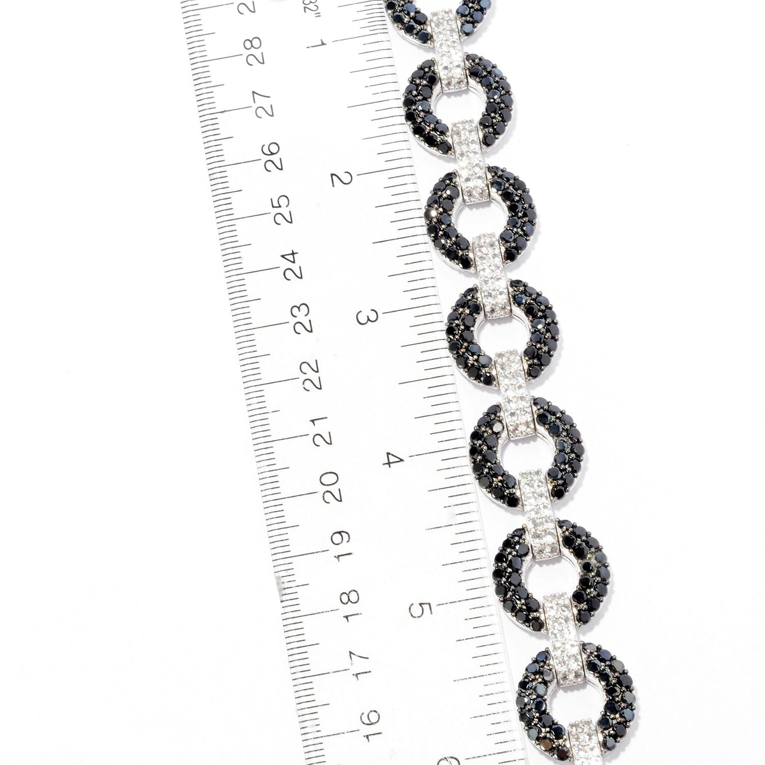 Pinctore Sterling Silver 4ctw Black Spinel Chain & Link Bracelet