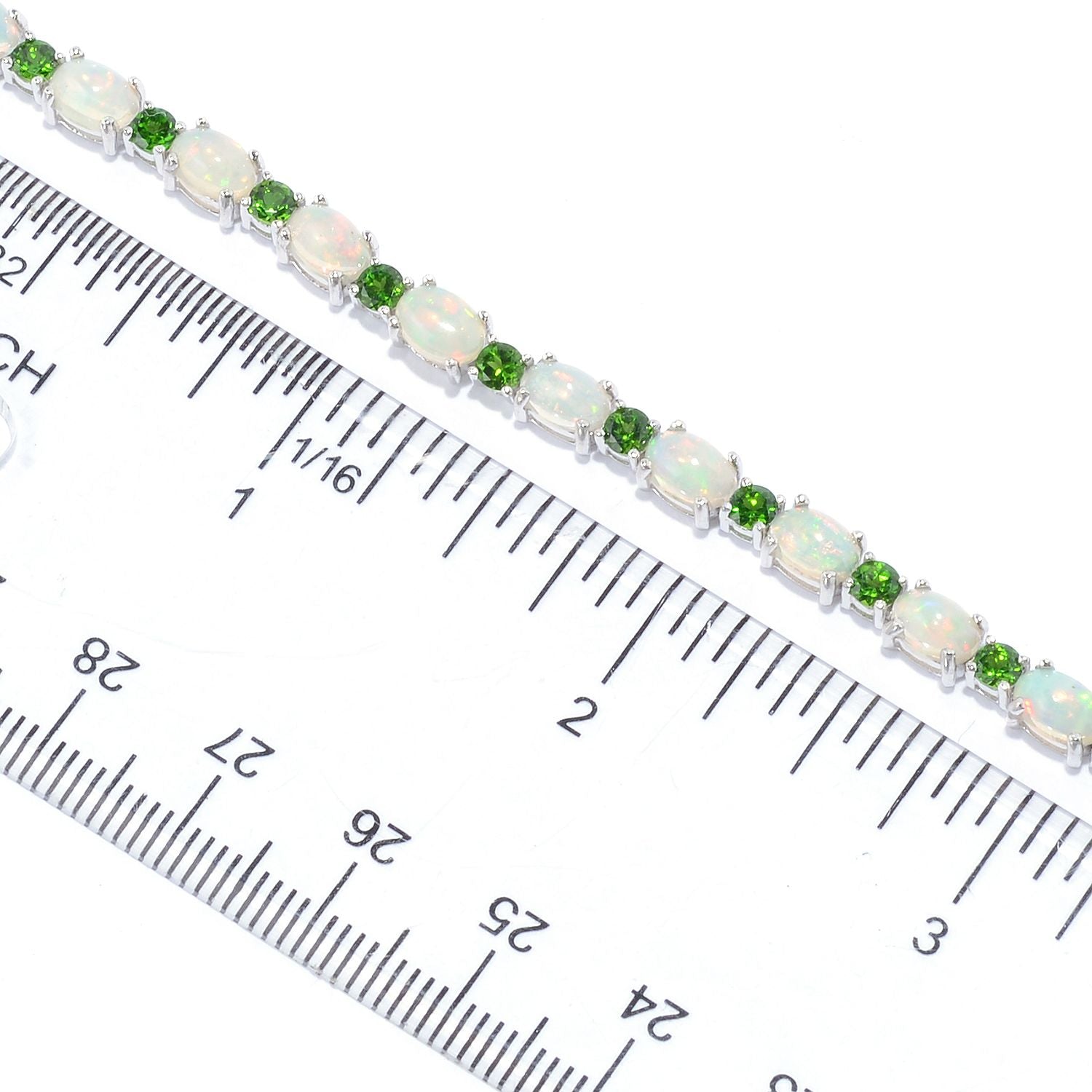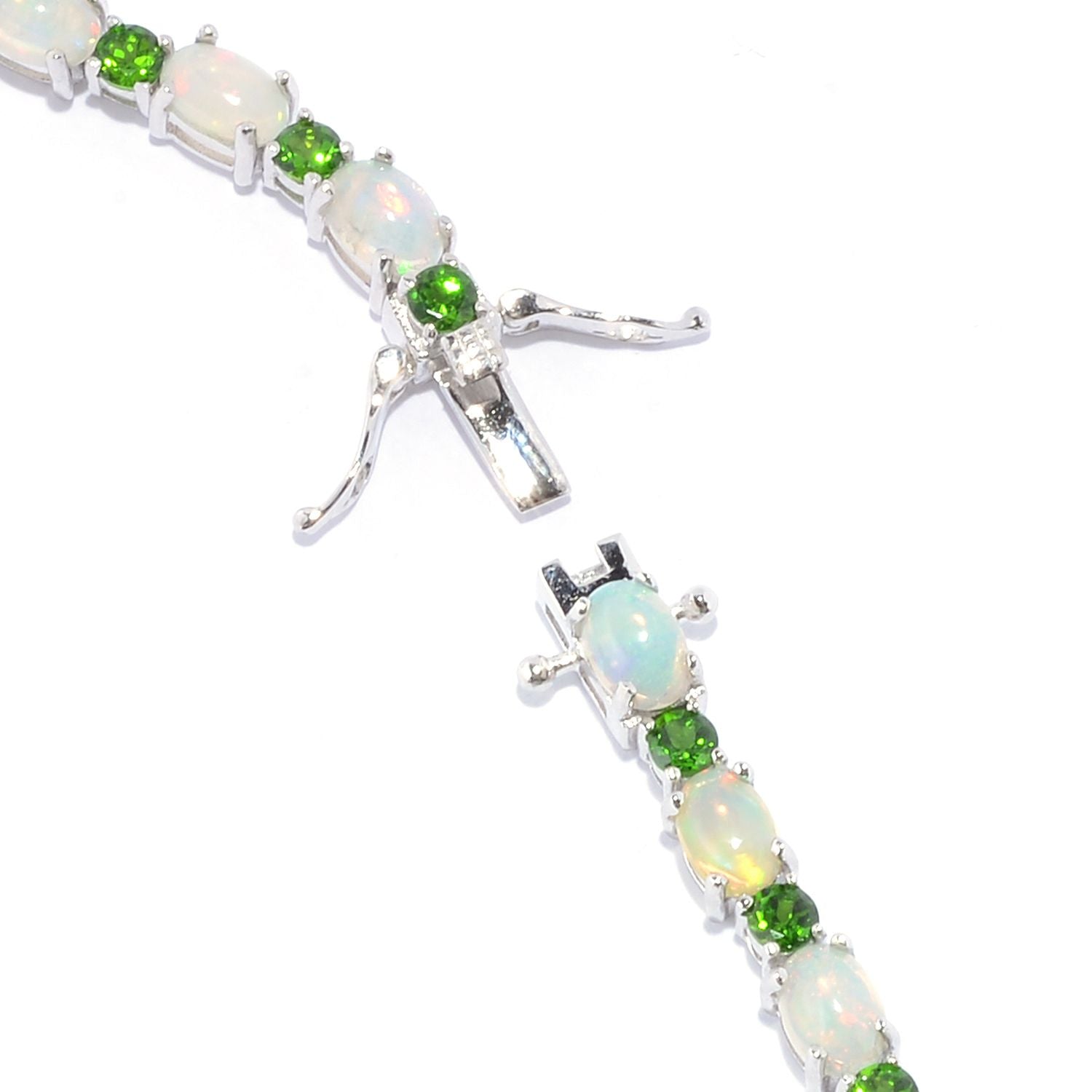 - Ethiopian Opal & Chrome Diopside: Combines the fiery iridescence of 6x4mm oval Ethiopian opals with the vivid green brilliance of 3mm round chrome diopside gemstones.