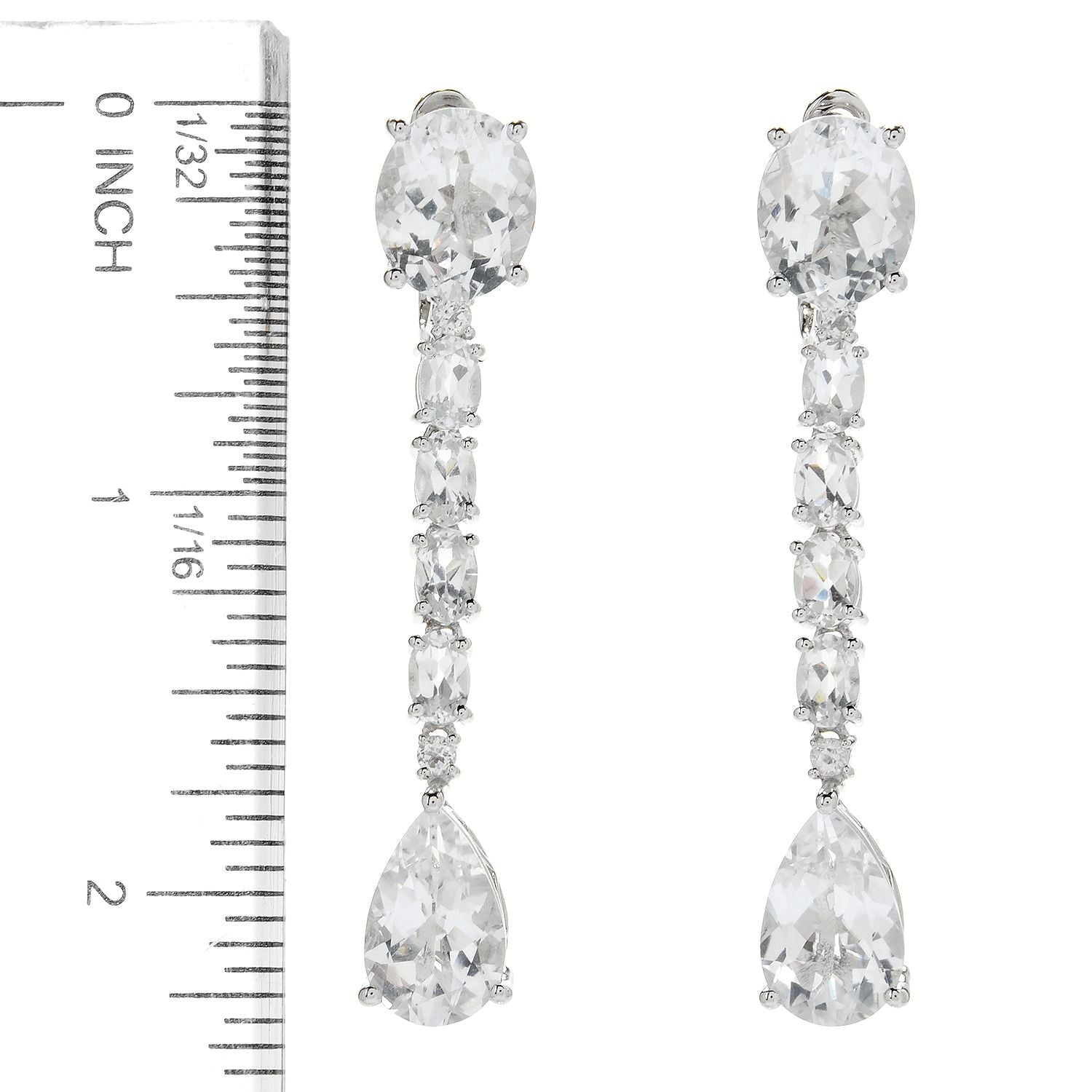 The White Topaz version showcases a collection of beautifully cut stones, including two pear-cut stones (14 x 9mm each), two oval-cut stones (12 x 10mm each), eight oval-cut stones (6 x 4mm each), and four pear-shaped stones (2.5mm each). With a total weight of 22.32 carats, these earrings radiate a brilliant sparkle and are designed to make a statement.