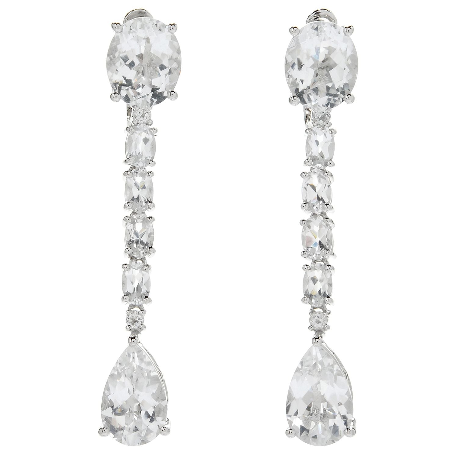 Set in rhodium over sterling silver, the earrings feature a high-shine finish that enhances the clear, dazzling appearance of the White Topaz. The prong setting securely holds each gem, ensuring they capture and reflect light beautifully.