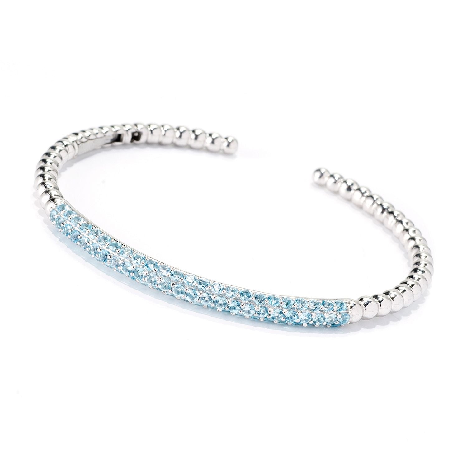 Pinctore Sterling Silver Red Garnet And Swiss Blue Topaz Gemstone Bangle Size, 7.25"