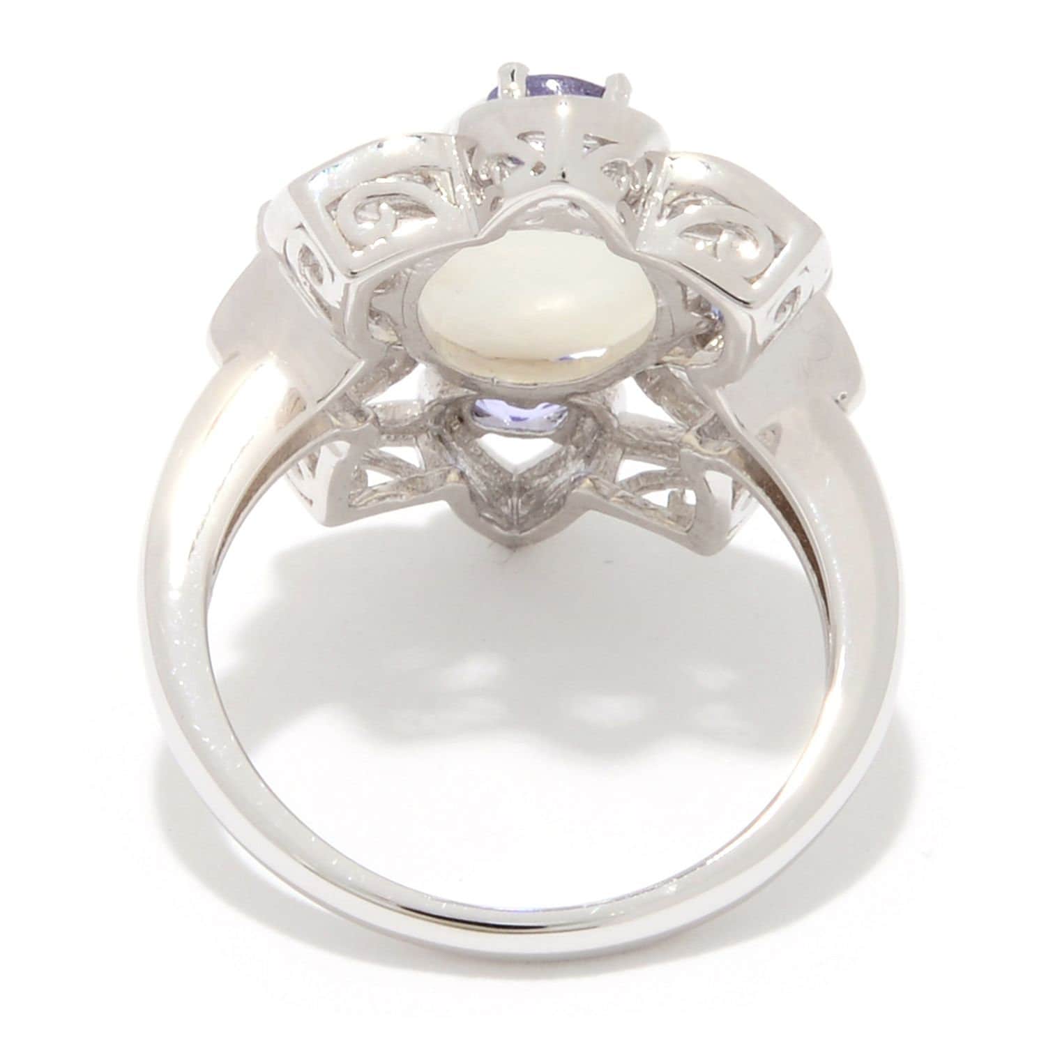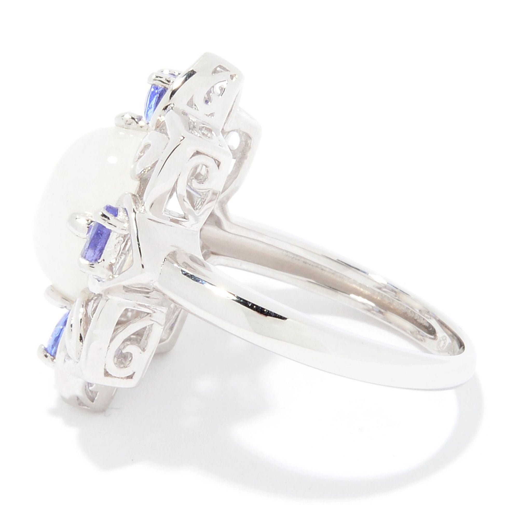 Pinctore 925 Sterling Silver Rainbow Moonstone & Tanzanite Solitaire Ring