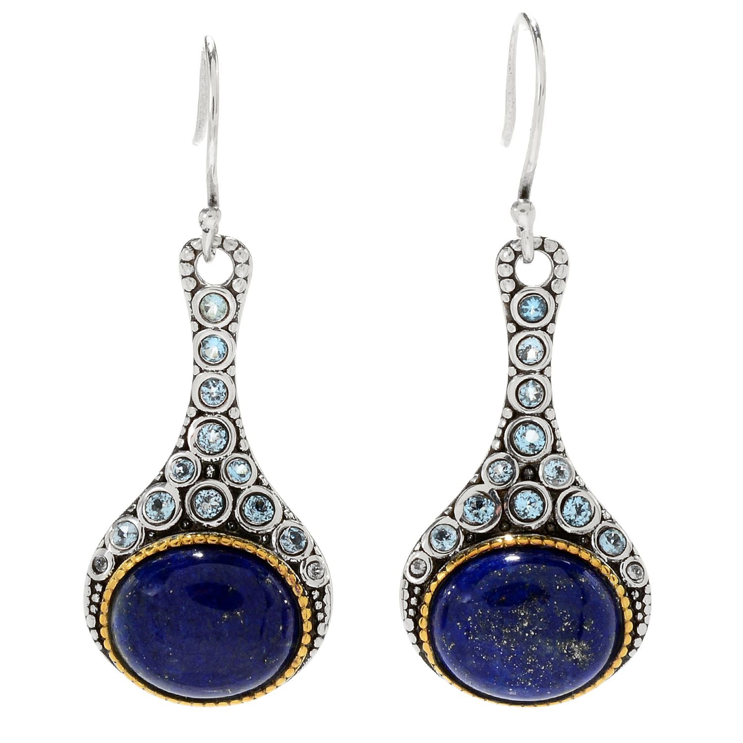 - Elegant Gemstone Combination: Oval lapis lazuli cabochons paired with vibrant Swiss blue topaz and sparkling white topaz for a dynamic and colorful design.